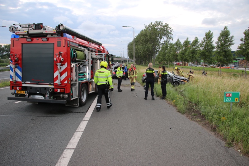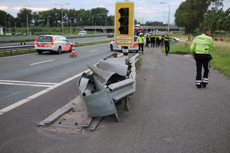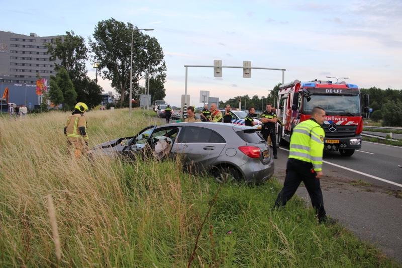 Delft – Vrijdagavond 3 juli is er op de oprit Delft Noord een auto tegen een RIMOB (rimpelbuisobstakelbeveiliger) geknald. Na het ongeval ramde de auto ook nog een lantaarnpaal uit de grond. Na het ongeval werden meerdere politie eenheden, twee ambulance’s en de brandweer gealarmeerd.