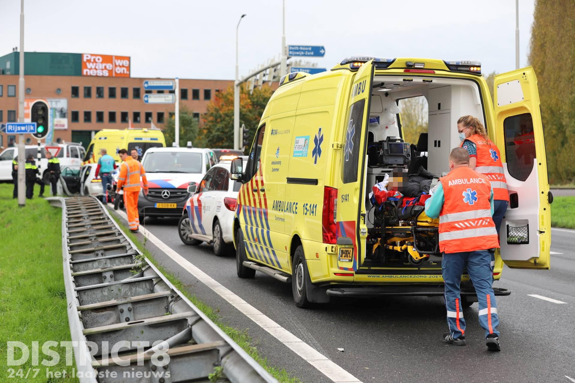 Rijswijk – Zondagochtend 31 oktober is op de afrit van de A13 bij Delft-Noord een auto uit de bocht gevlogen. De auto schaafde langere tijd tegen de vangrail en kwam uiteindelijk op de kruising met de Vrijenbanselaan in Rijswijk tot stilstand.