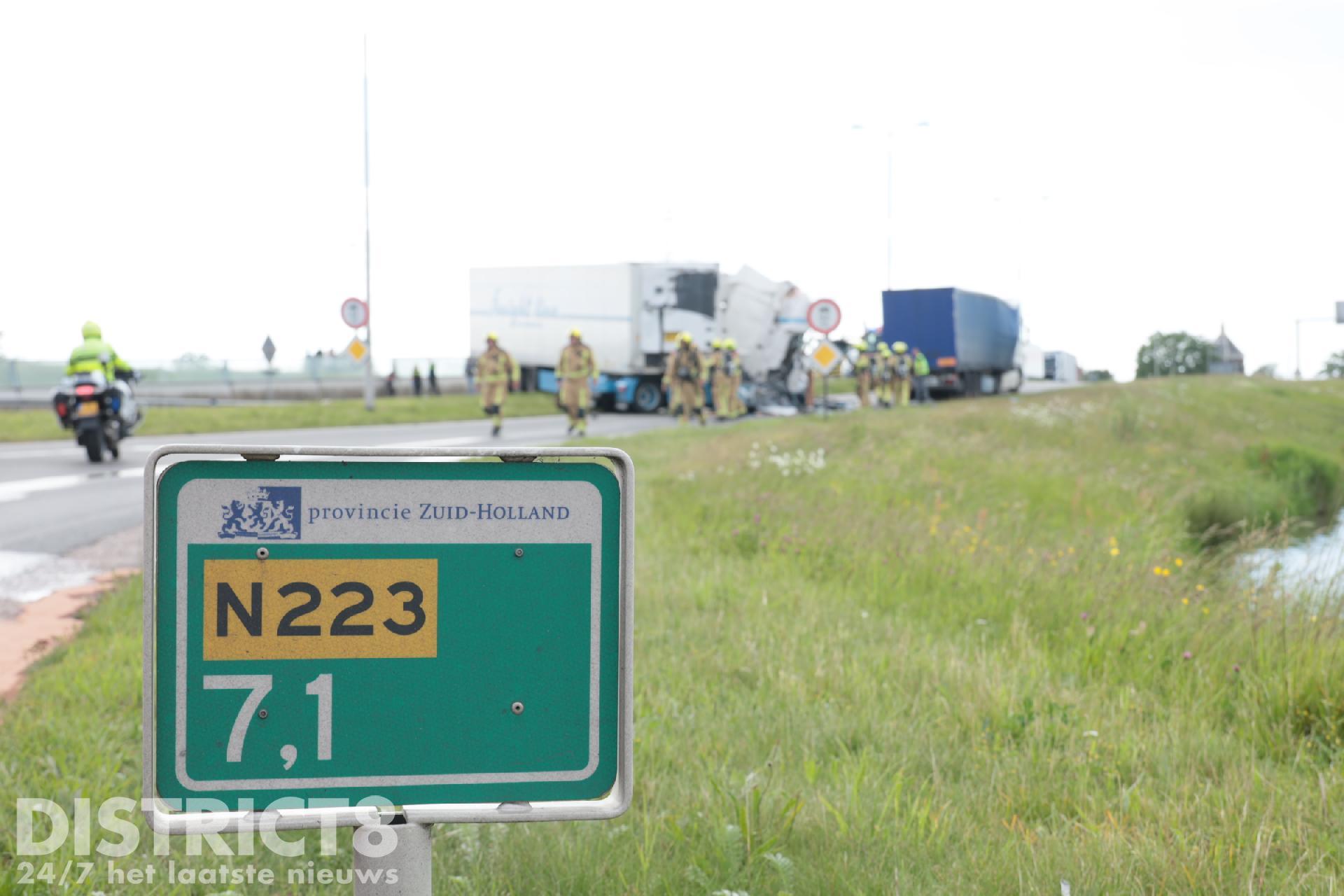 Omstreeks 17:50 ging het door onbekende oorzaak gruwelijk mis ter hoogte van het Maasdijkplein / N223. Drie vrachtwagen kwamen aldaar in botsing met een enorme ravage als gevolg.