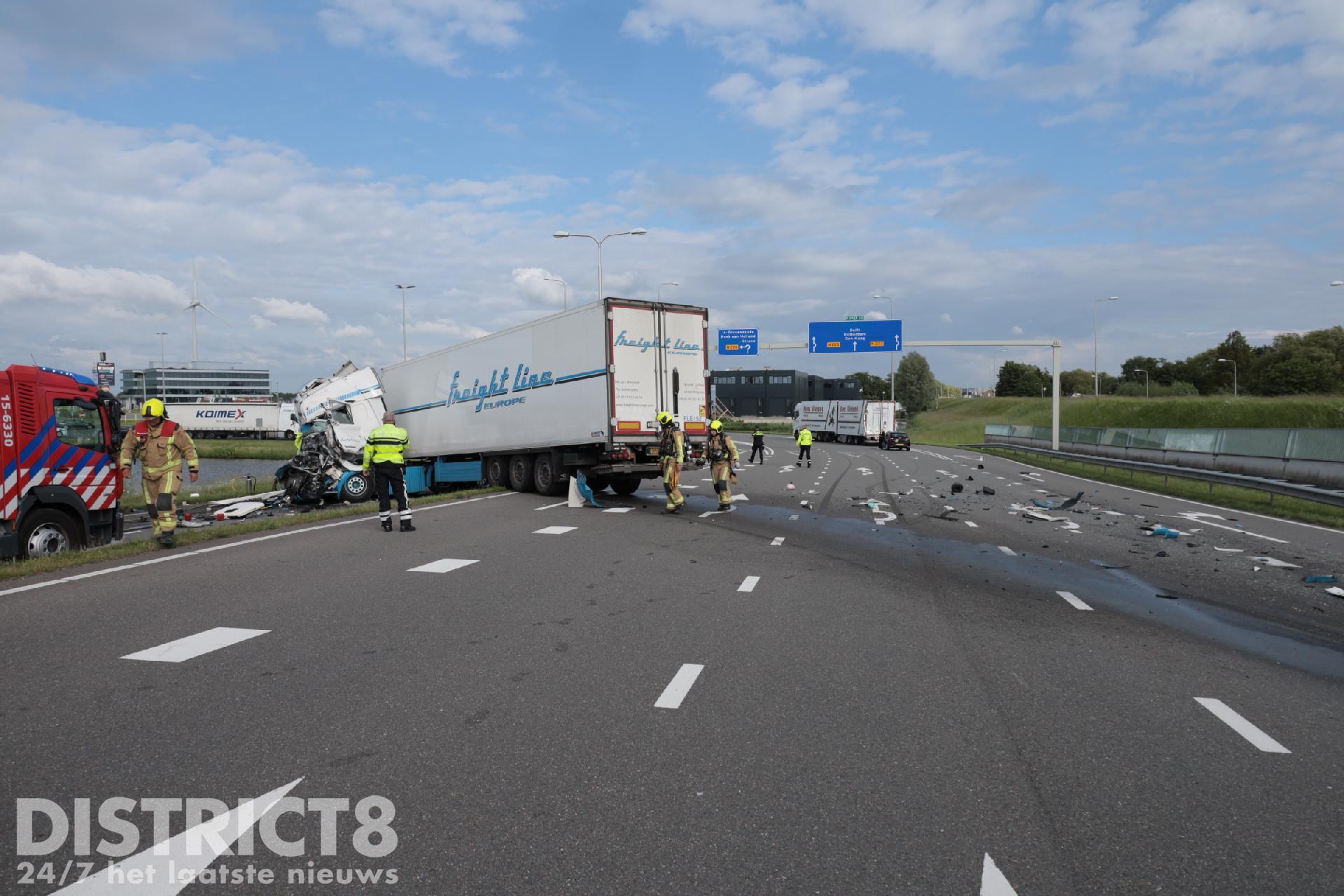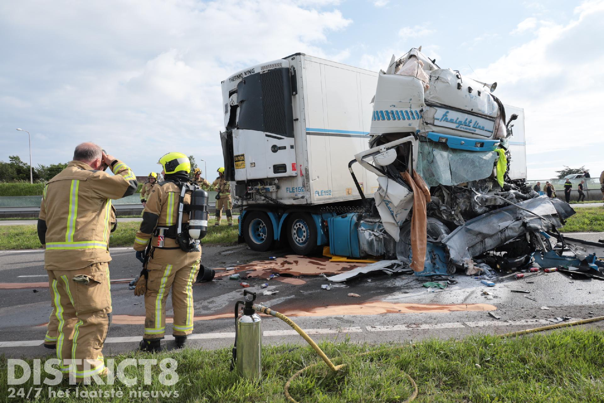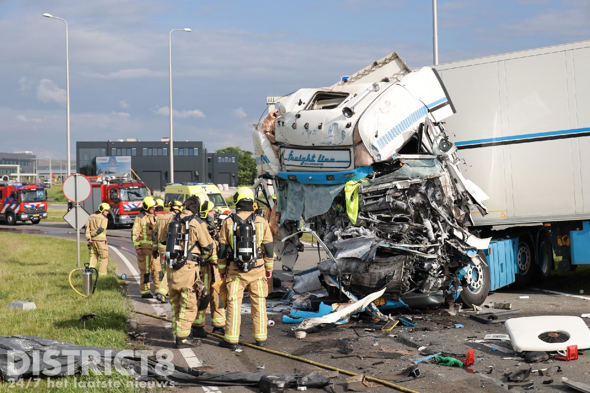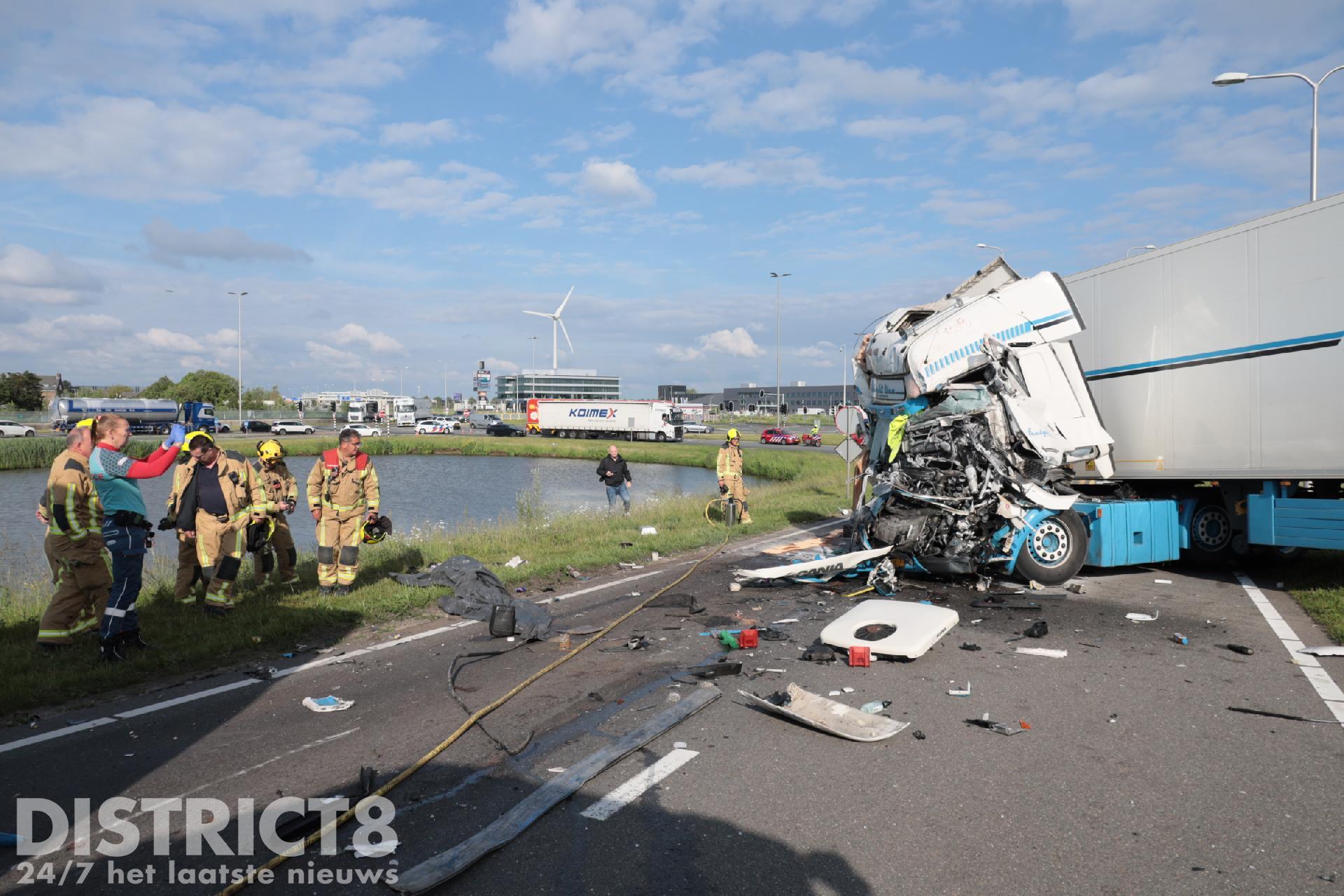 Gigantische ravage na aanrijding met drie vrachtwagens Hoeksebaan Maasdijk