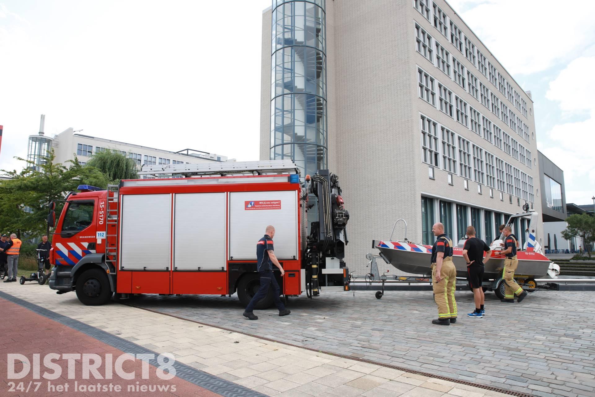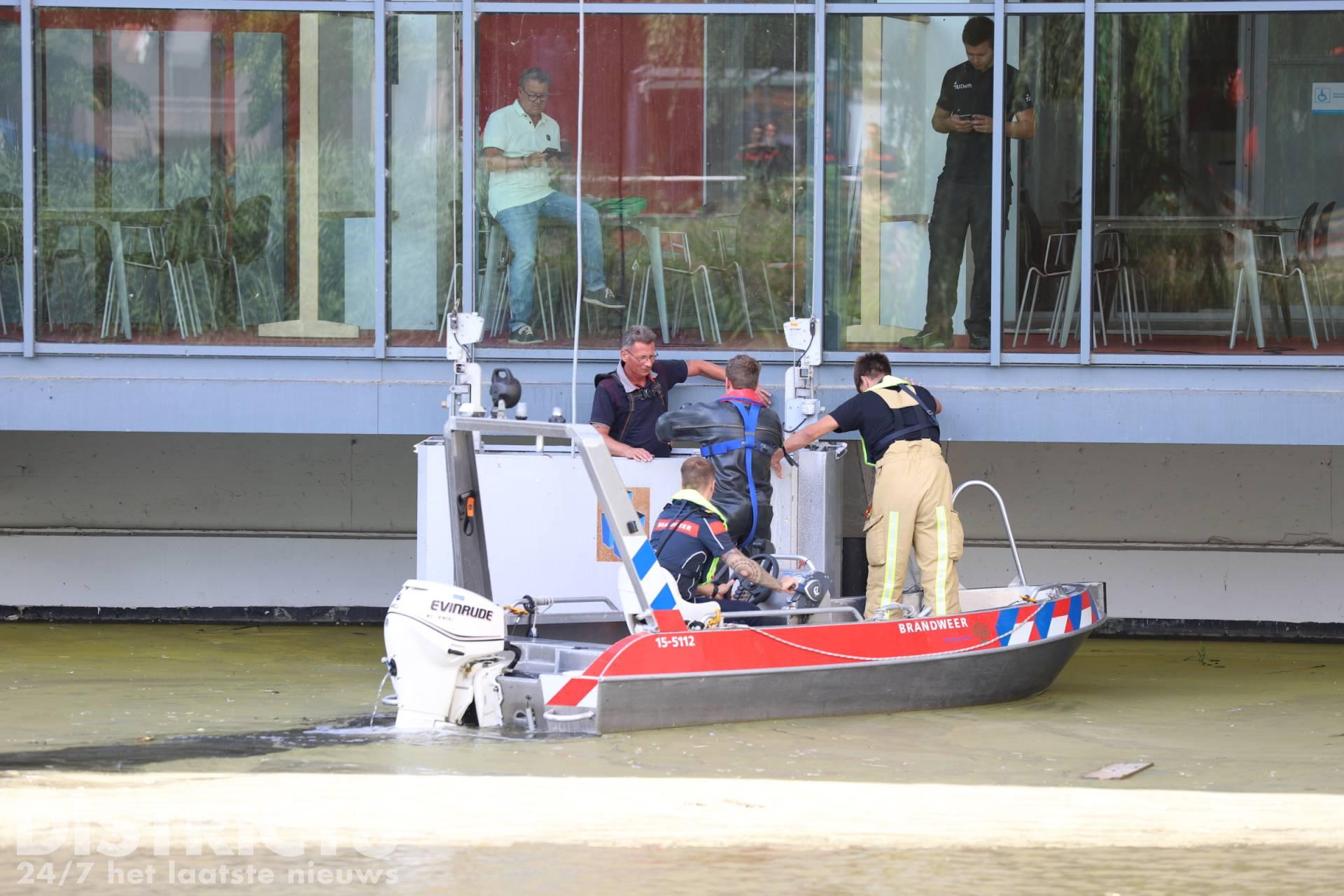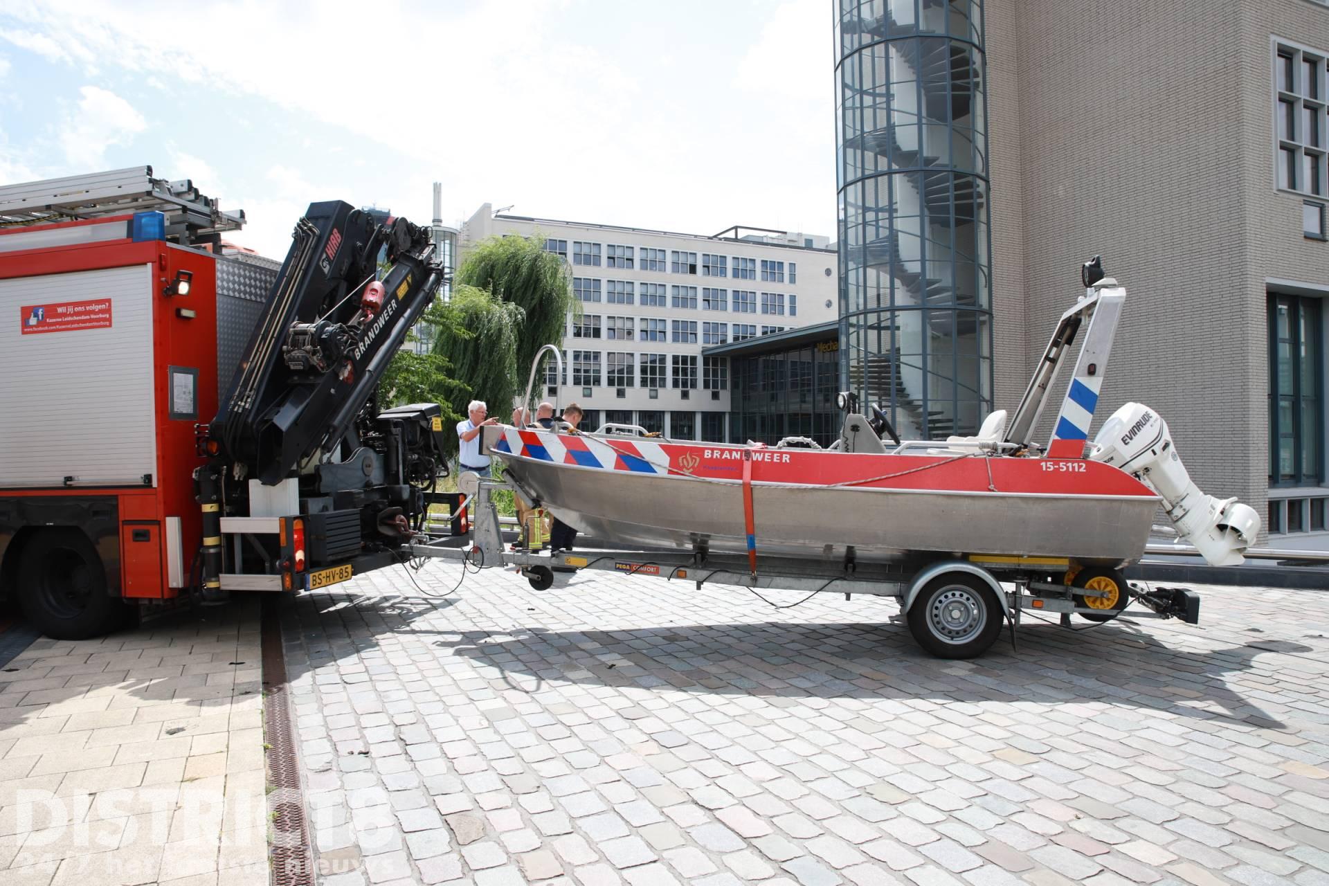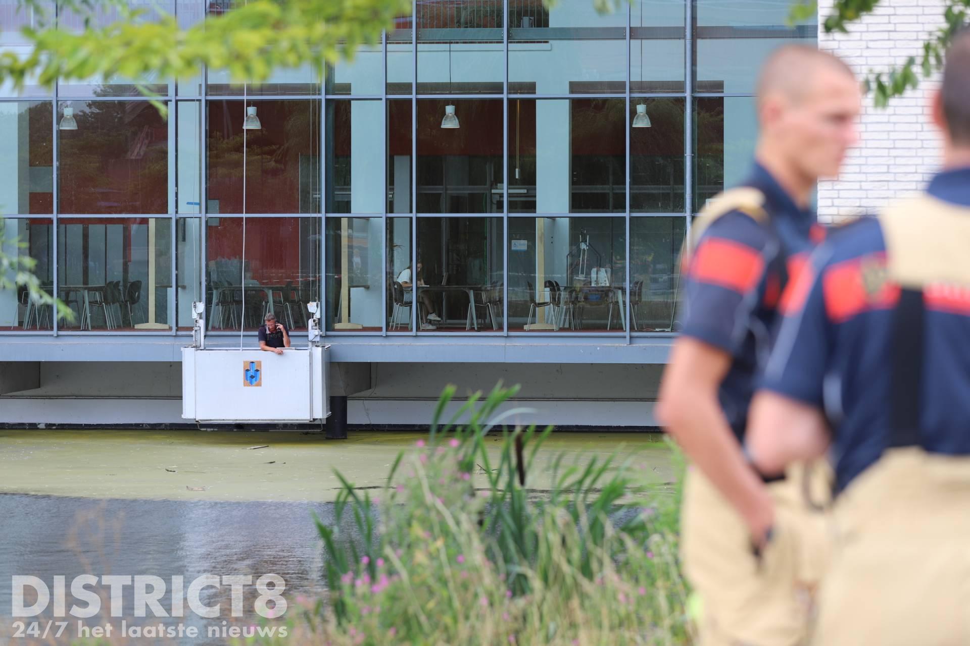 Ter plaatse bleek er een glazenwasser in zijn bakje aan de buitenzijde van het pand stil te hangen boven het water. De brandweer is ter plaatse en maakt een ‘plan van aanpak’ om de glazenwasser weer op de ‘kant’ te krijgen.