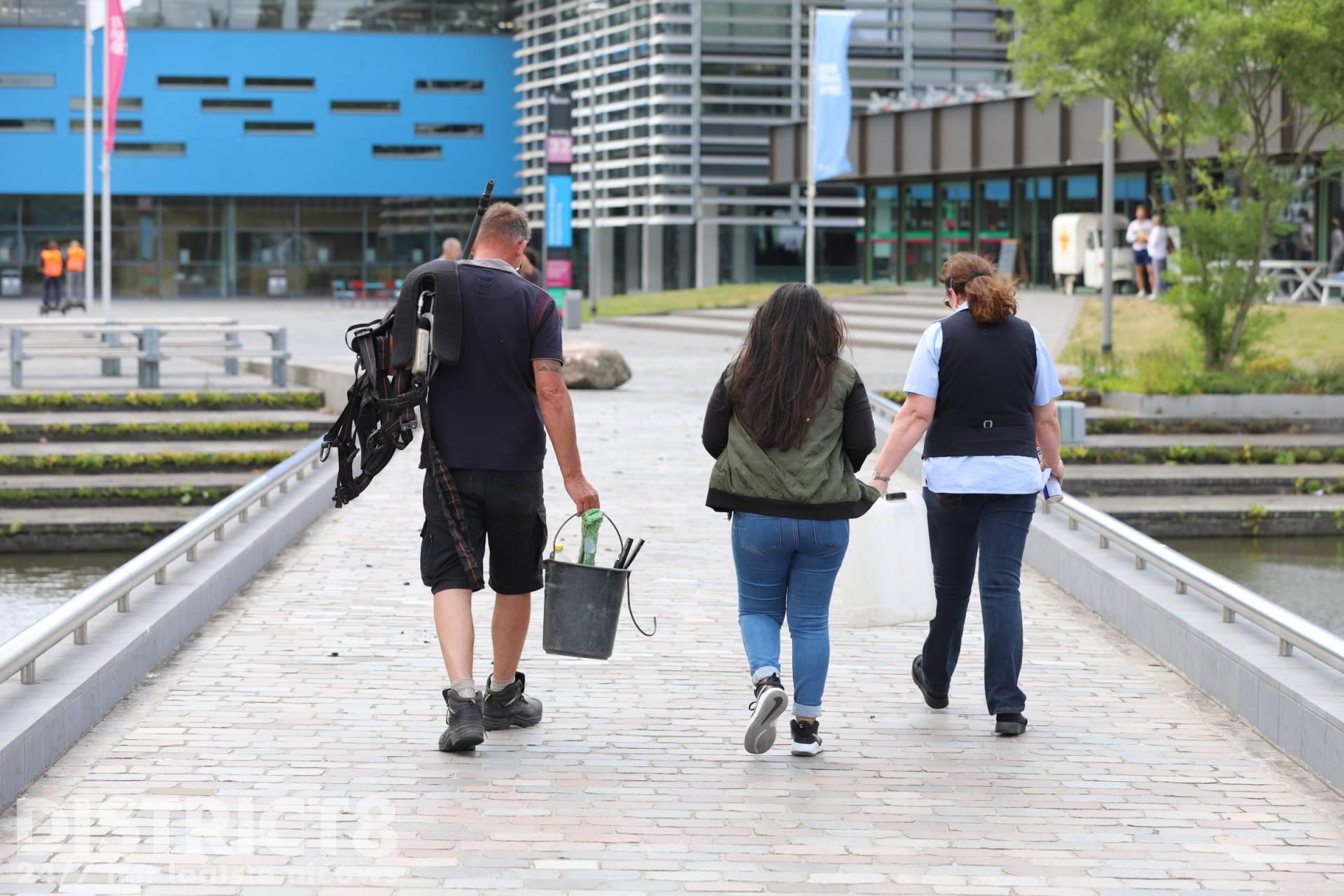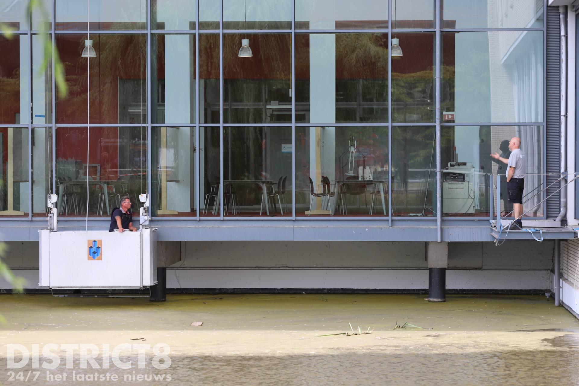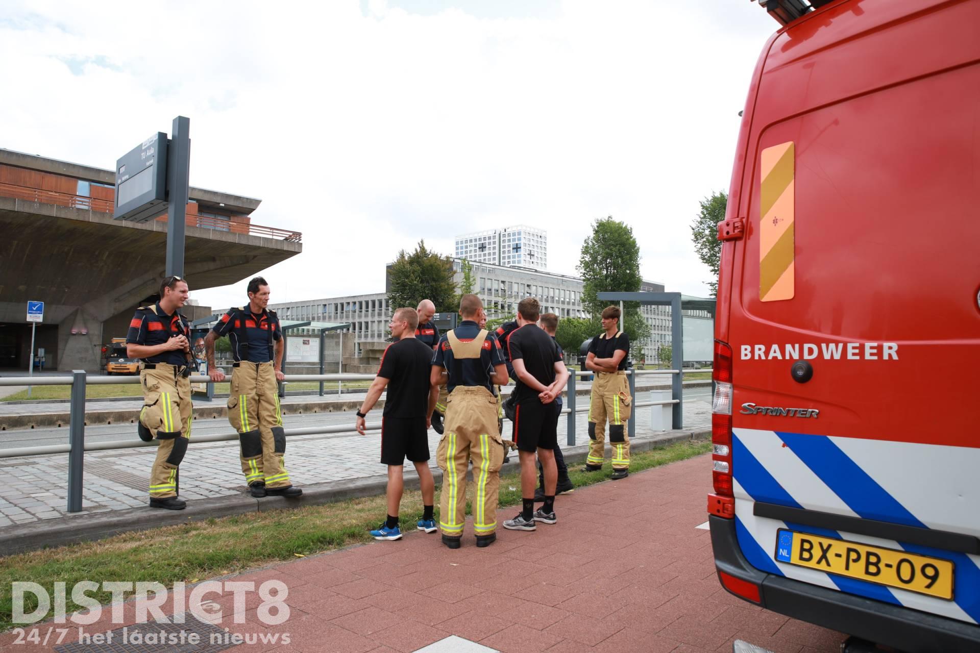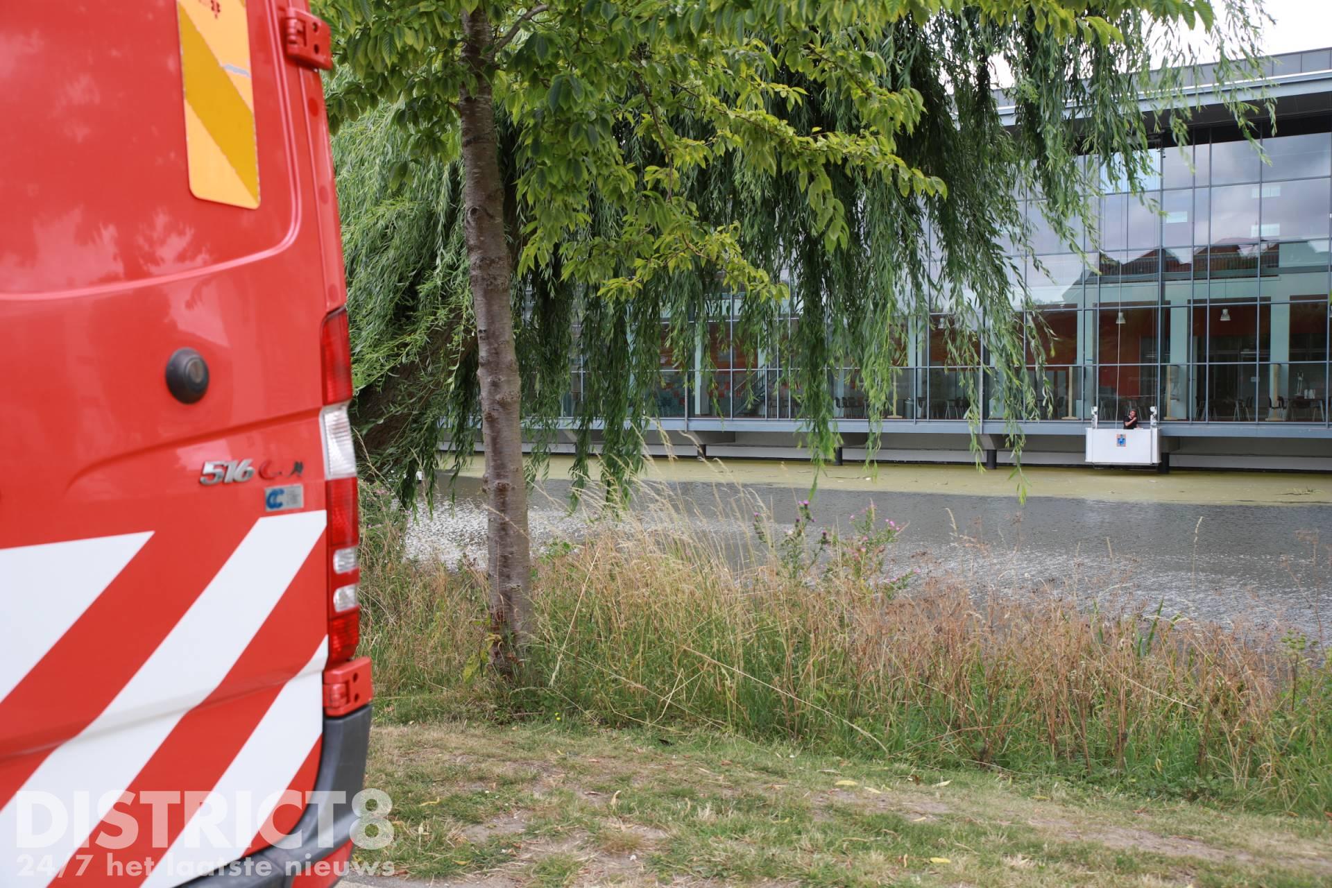 Ter plaatse bleek er een glazenwasser in zijn bakje aan de buitenzijde van het pand stil te hangen boven het water. De brandweer is ter plaatse en maakt een ‘plan van aanpak’ om de glazenwasser weer op de ‘kant’ te krijgen.