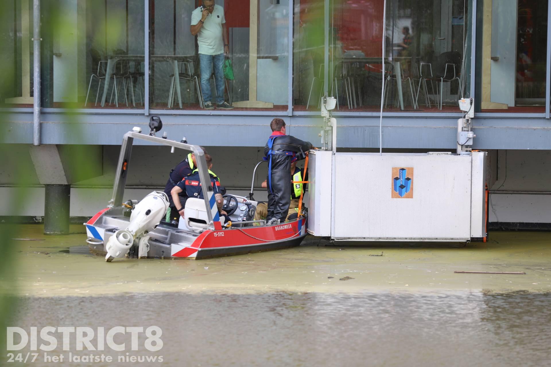De glazenwasser is uiteindelijk met behulp van een brandweerboot naar de kant gebracht. Een monteur zal ter plaatse komen om het euvel te repareren.