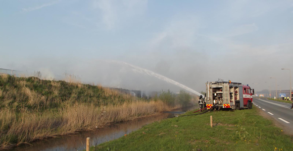 Rhoon – De brandweer werd zondagavond 5 mei zonder spoed gealarmeerd voor een buitenbrand op de Rhoonse Baan in Rhoon/Portland. Ter plaatse stond er een groot stuk gras op een heuvel in brand en deze Branden goed. de brandweer heeft met een waterkanon en met een brandweerslang de brand geblust. de brand is vermoedelijke door een groepje jongens aan gestoken.
