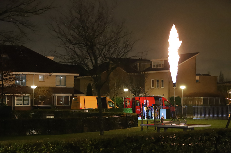 Naast een vlam van een paar meter hoog en wat herrie bleef het rustig. Doordat WestlandInfra een kleine vlam gebruikte, bleef de geluidsoverlast beperkt.