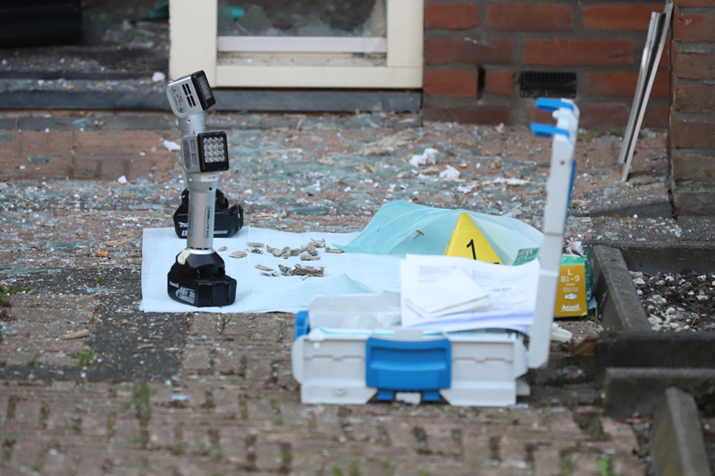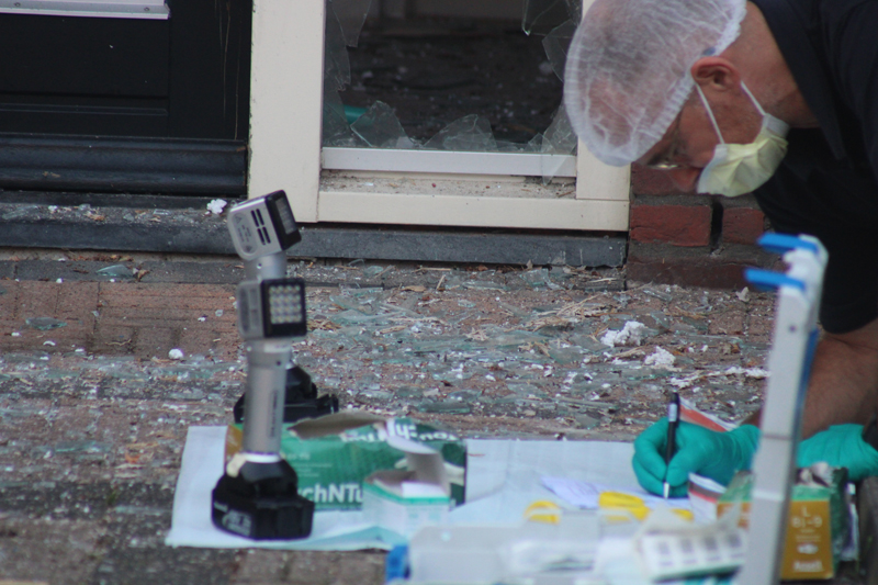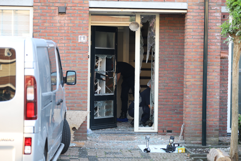 Meerdere getuigen zagen net na de explosie een scooter hard wegrijden uit de straat. Door de explosie is de volledige voordeur van de woning gesneuveld. Meerdere rechercheurs en de experts van de Forensische Opsporing (FO) hebben uitgebreid onderzoek gedaan naar wat er zich ter plaatse heeft afgespeeld.
