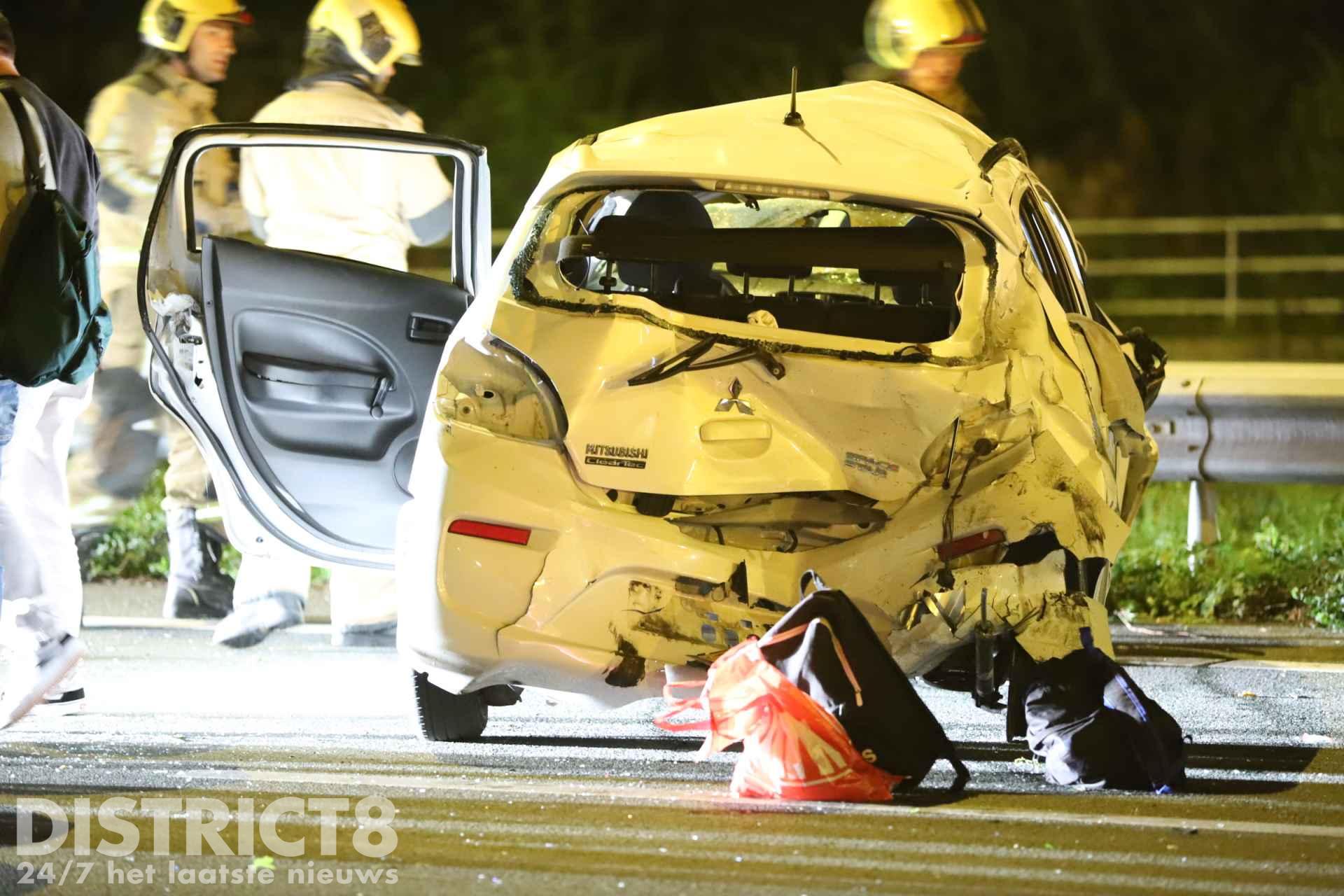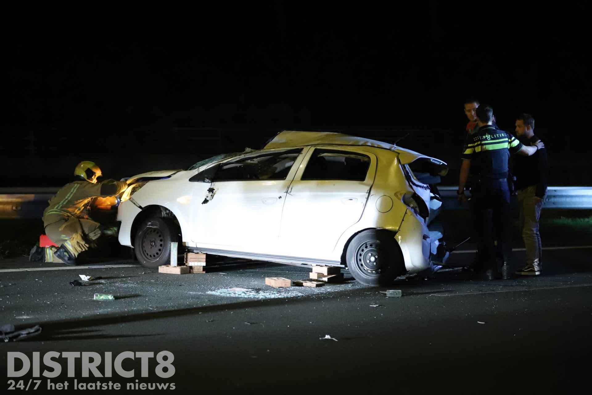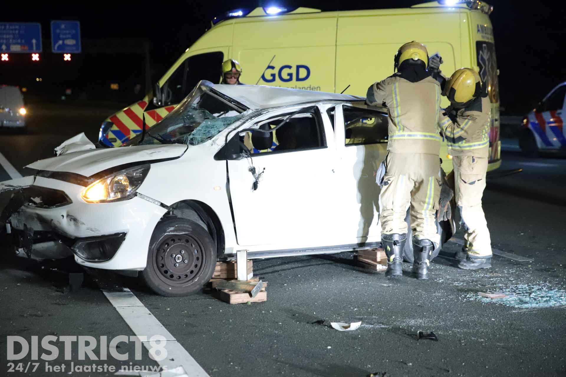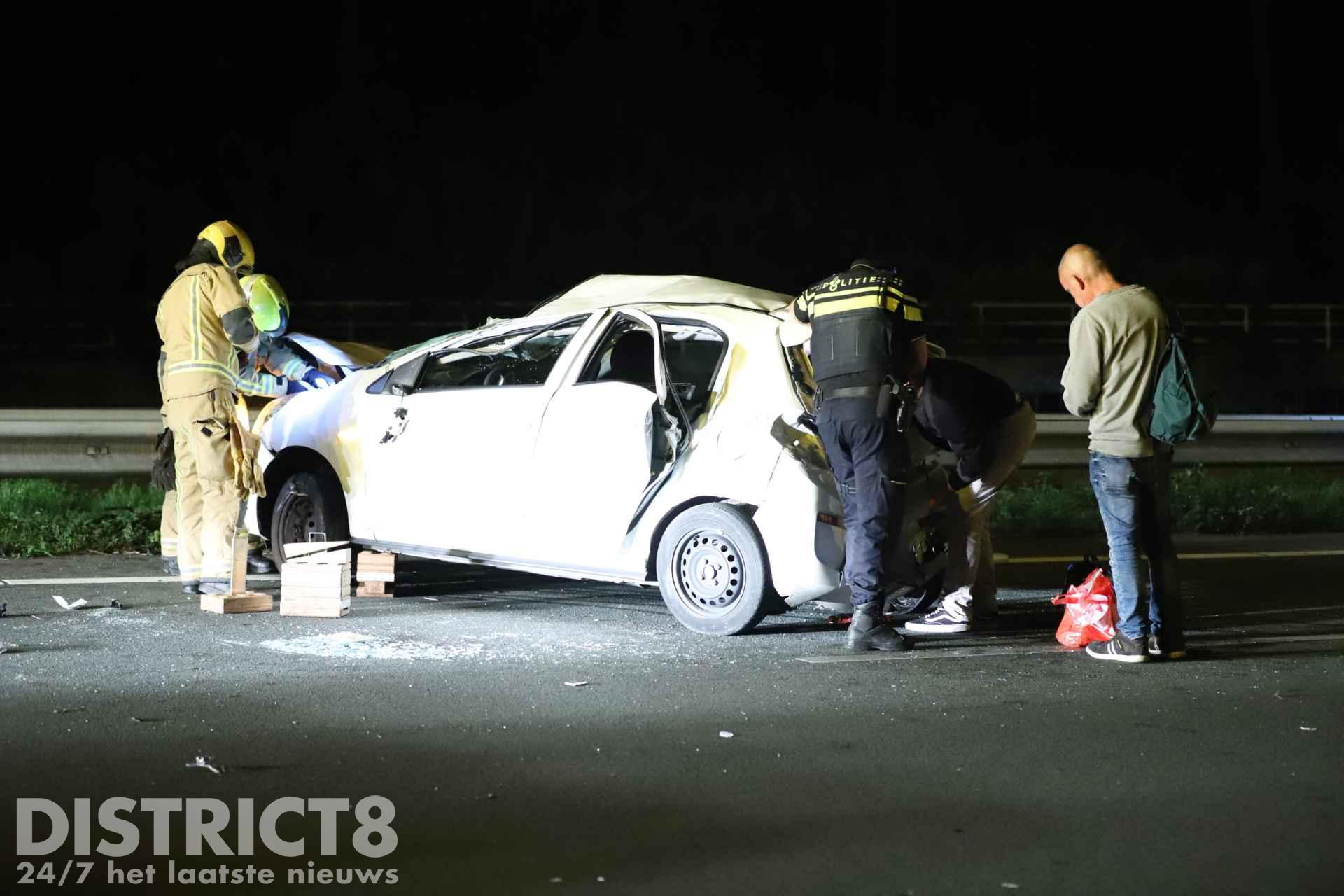 Rond kwart voor twee kwamen twee voertuigen met elkaar in botsing. Een van de voertuigen raakte hierbij in een slip en is enkele keren over de kop gegaan.