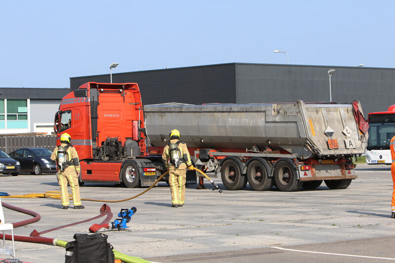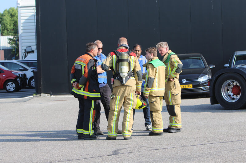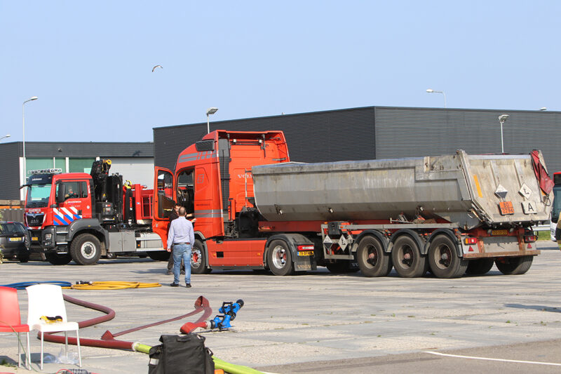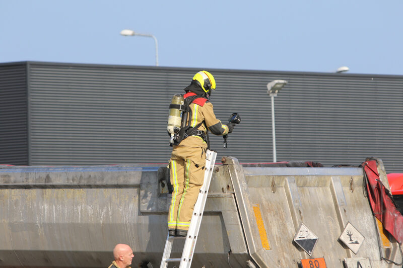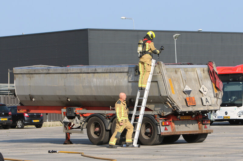 Na overleg met de brandweer, de Inspectie Leefomgeving en Transport, het bergingsbedrijf en het transportbedrijf is besloten om de trailer op het terrein te laten staan. Via camera’s wordt de trailer gemonitord. Morgen wordt de lading door de vervoerder gecontroleerd en afgevoerd.