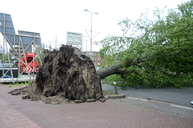 Den Haag – Zondagochtend kreeg de brandweer een melding van een stormschade op de Van Boecopkade ter hoogte van de Noord West Buitensingel in Den Haag.