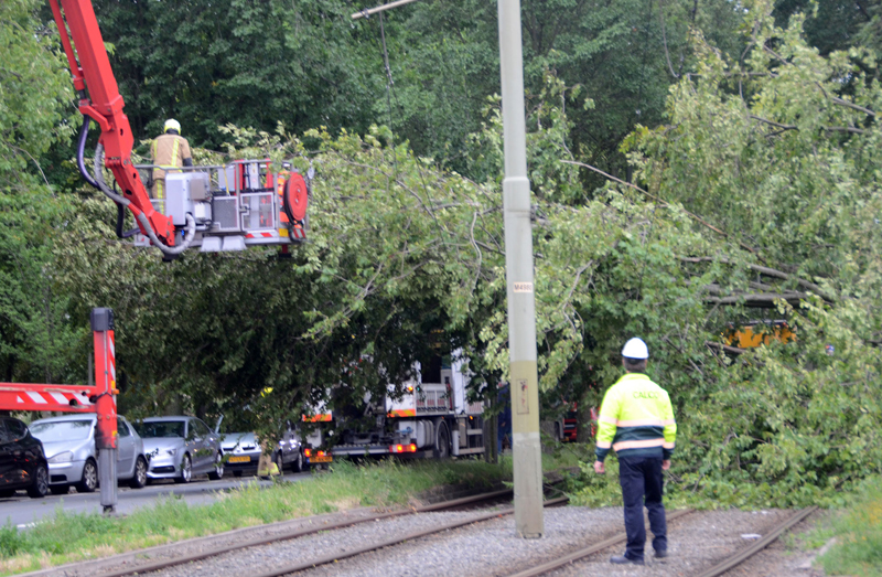 Ter plaatse bleek er door de harde wind een boom te zijn omgewaaid op de bovenleiding van de tram, hierdoor was het tramverkeer enige tijd ontregeld.