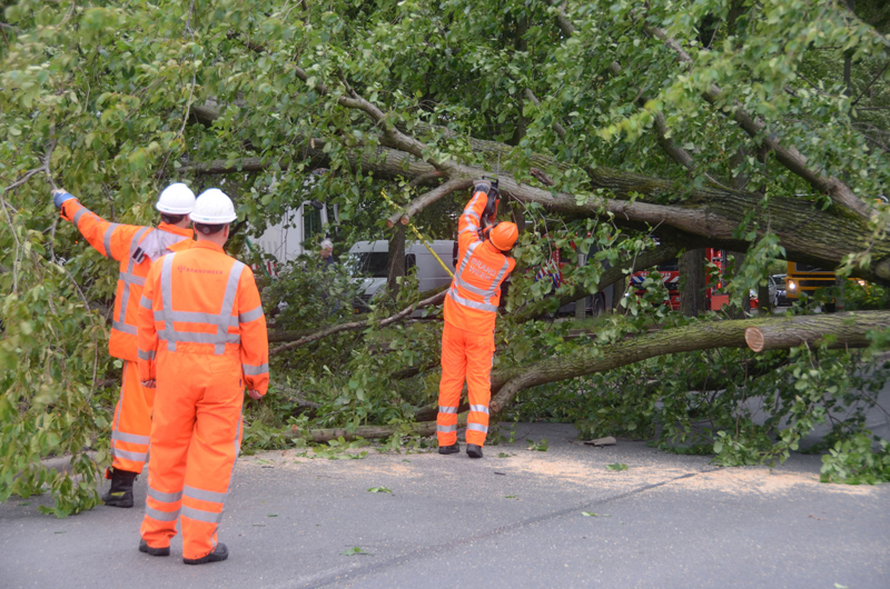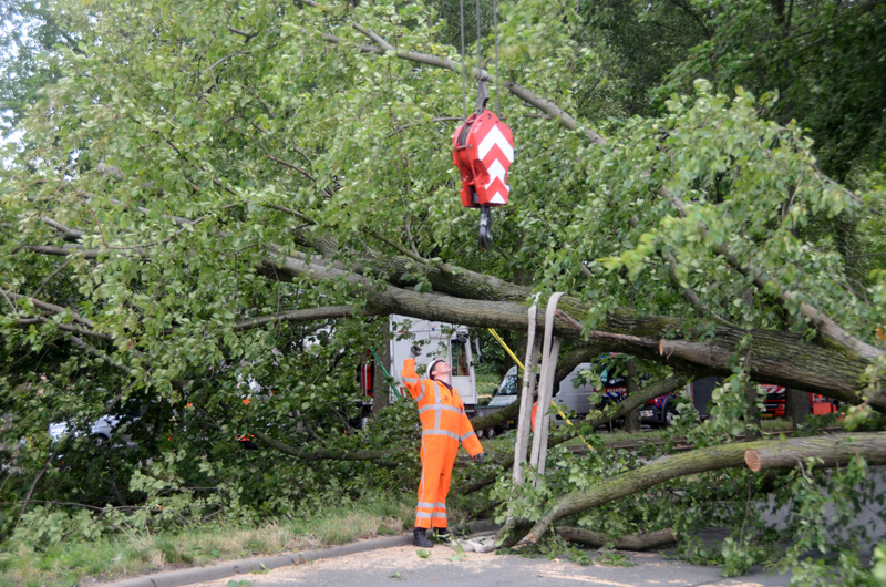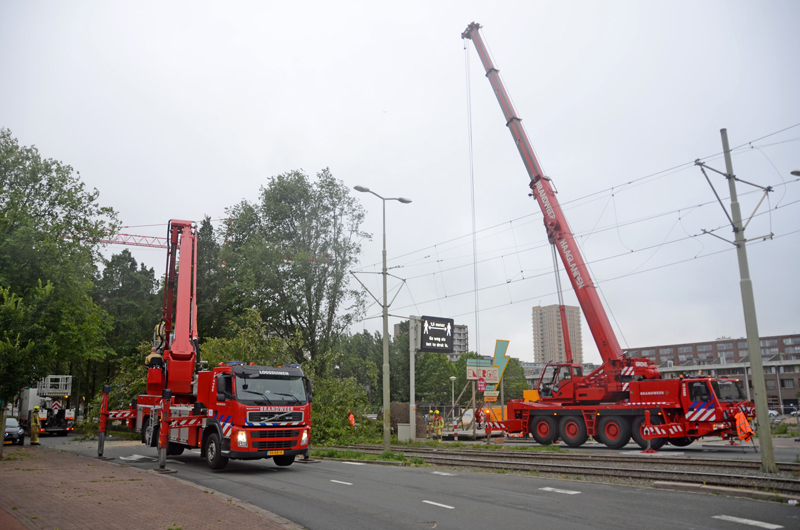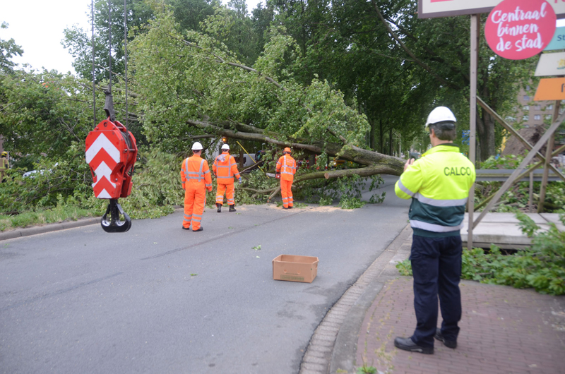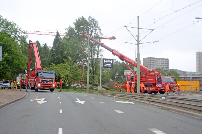 De brandweer kwam zonder spoed ter plaatse en heeft de boom in stukken gezaagd, de grote kraan uit Leidschenveen kwam ook ter plaatse en heeft ondersteuning geboden.