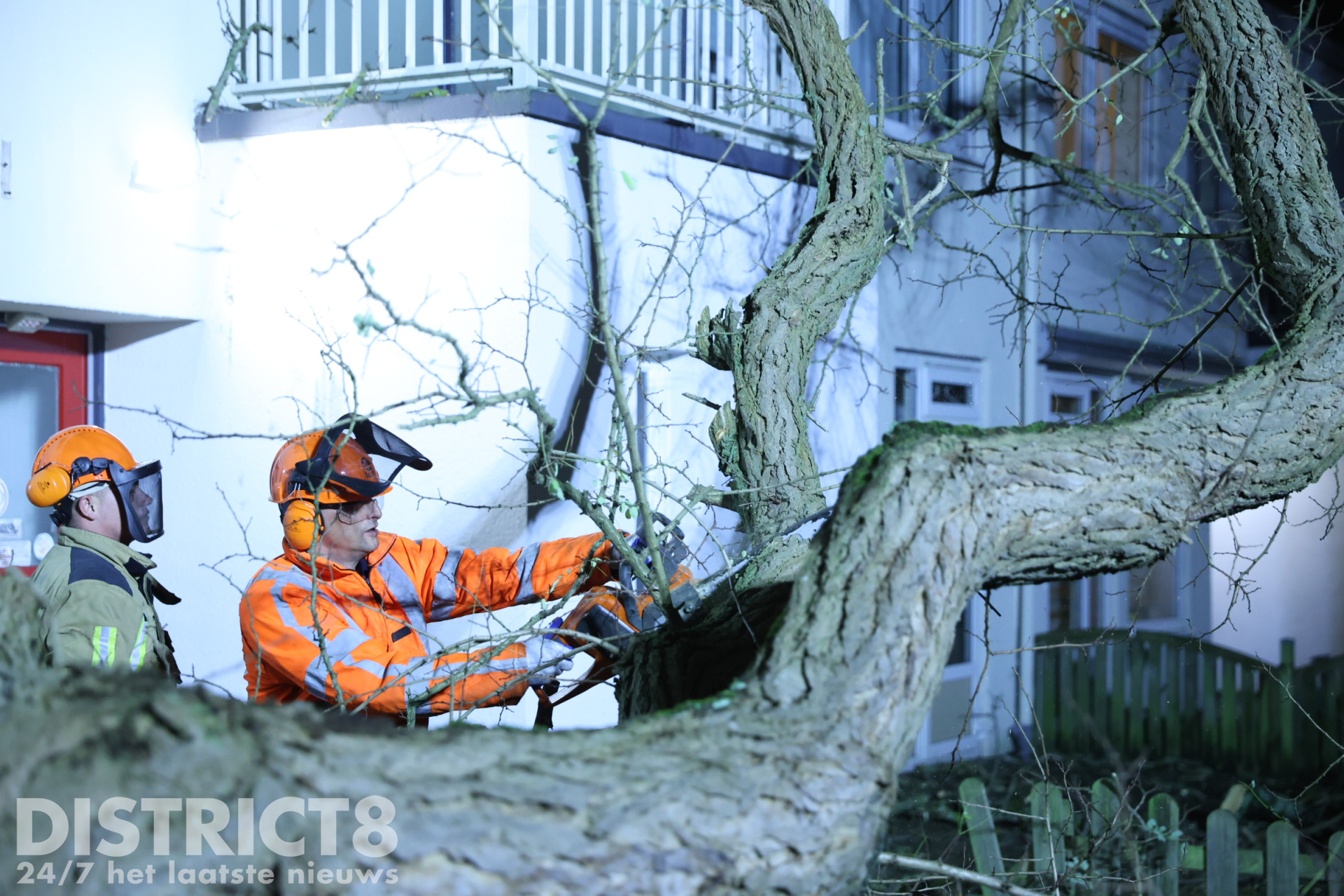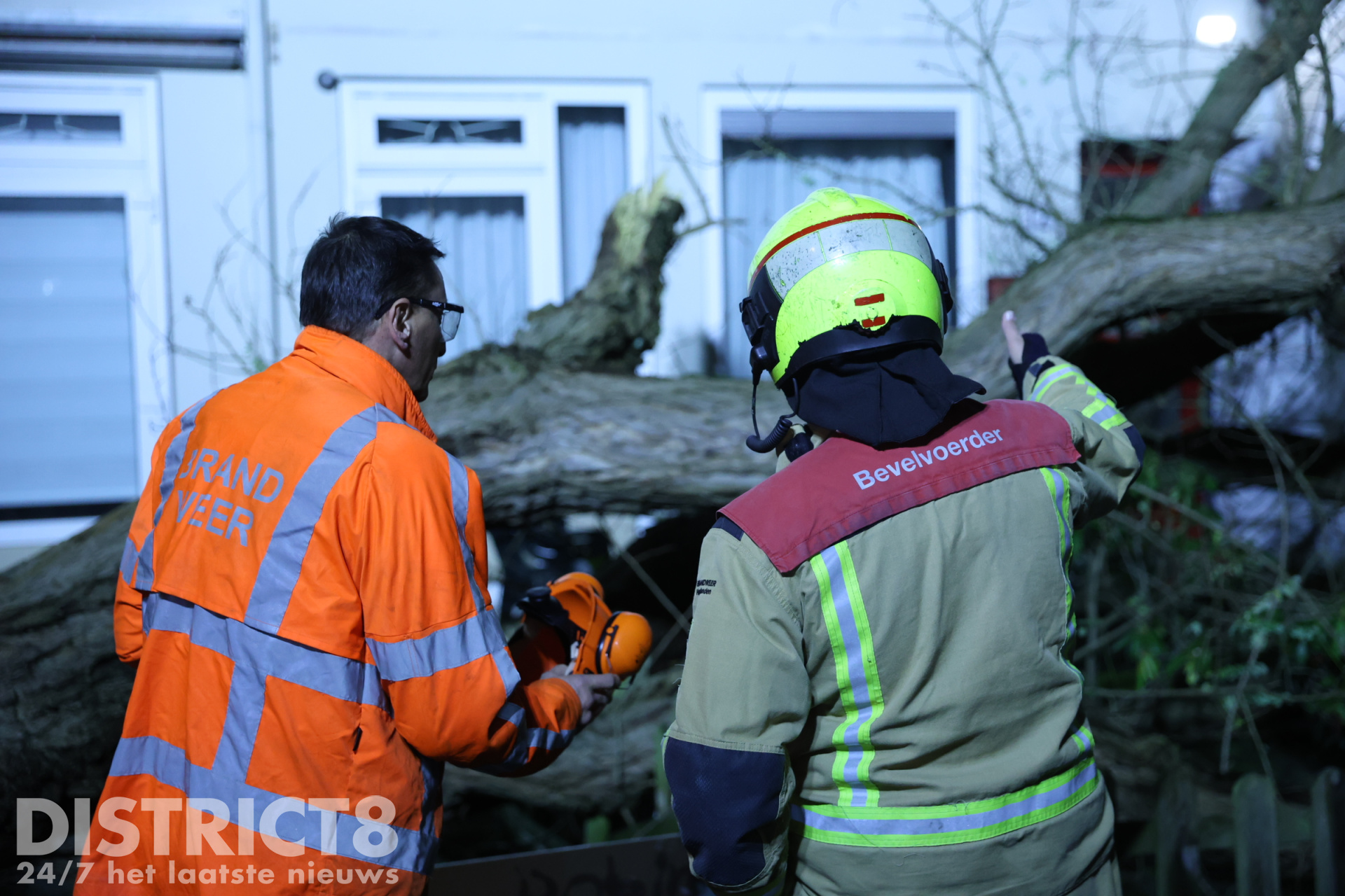 De brandweer kwam ter plaatse om een plan van aanpak te maken en om ervoor te zorgen dat de toegang tot de geblokkeerde woningen werd hersteld. Enkele tuinhekjes zijn door de omgevallen boom kapot gegaan.