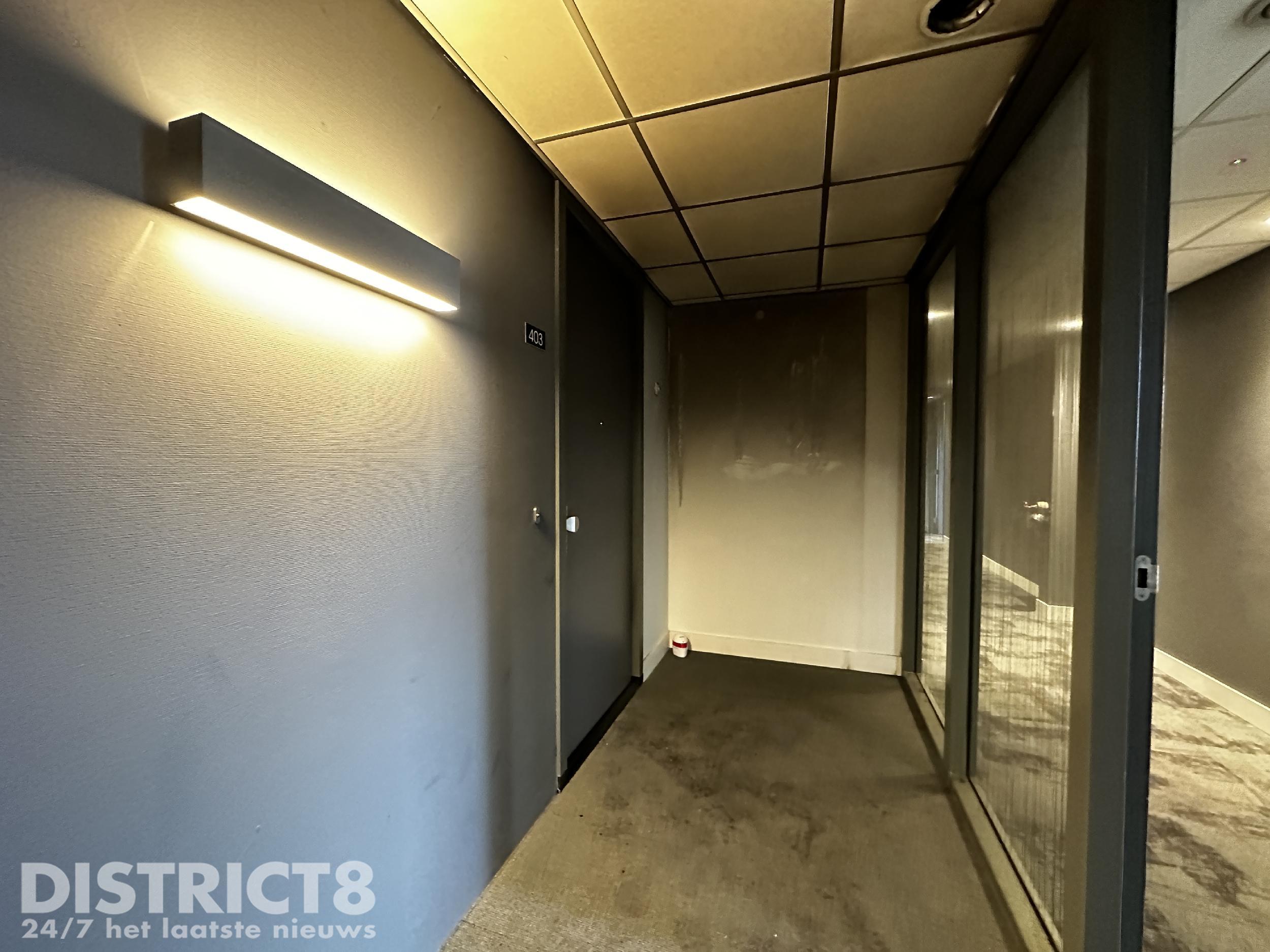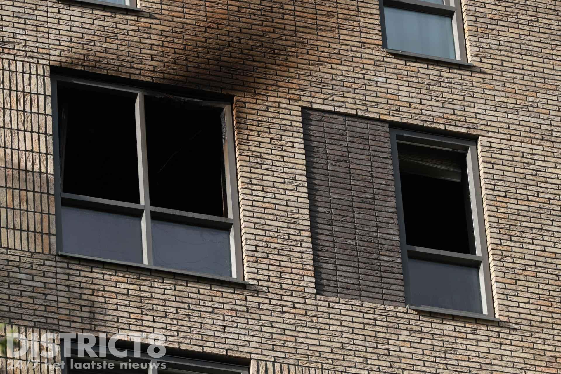 In de gang op de achtste verdieping is vrij weinig te zien van de brand. Enkele buren zijn vannacht door de brandweer open gebeukt om te controleren of er iemand aanwezig was.