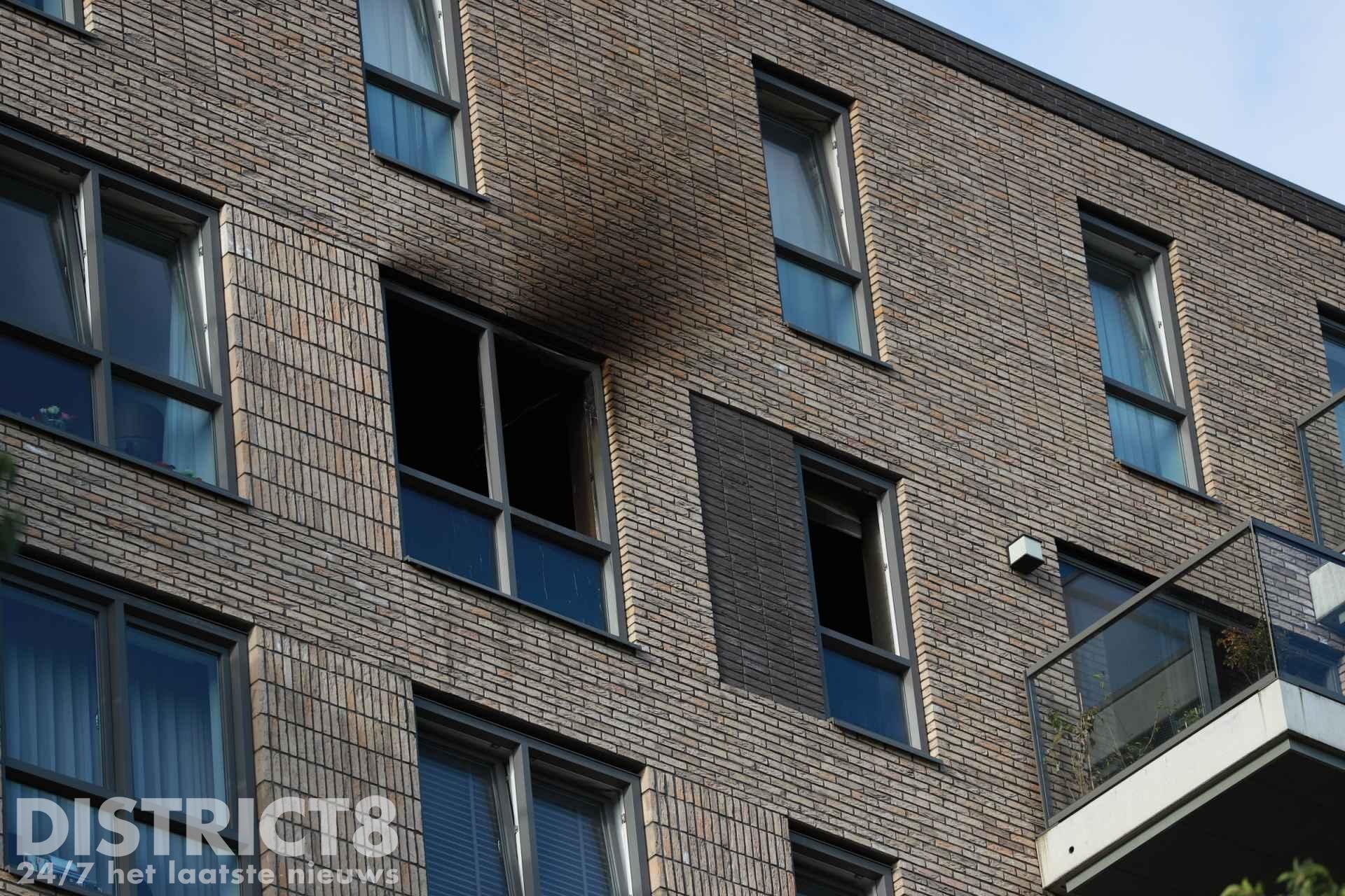 De ochtend van donderdag 6 oktober is de schade aan het appartement aan de Loevesteinlaan in Den Haag goed te zien. De binnenkant is volledig zwart.