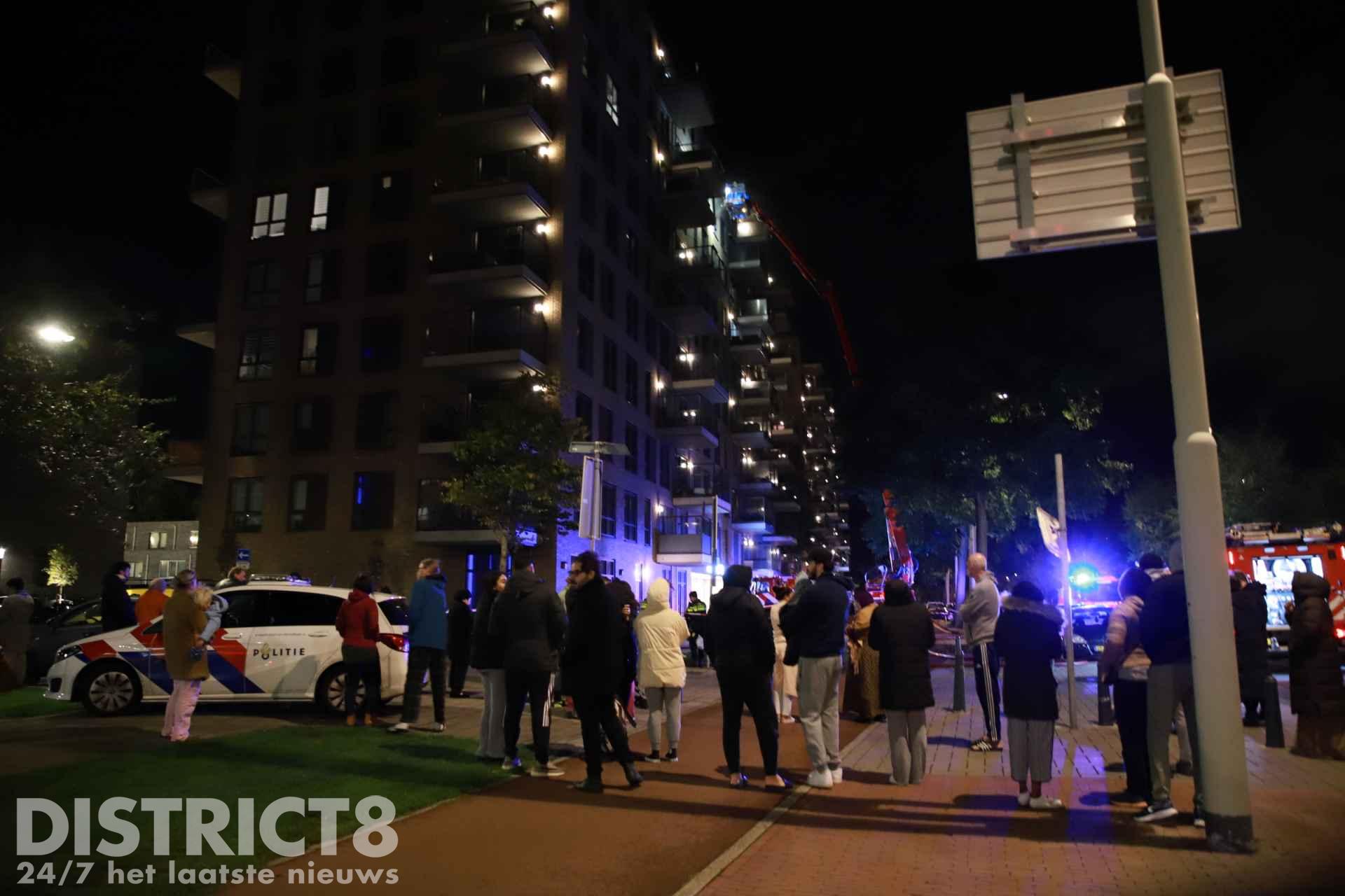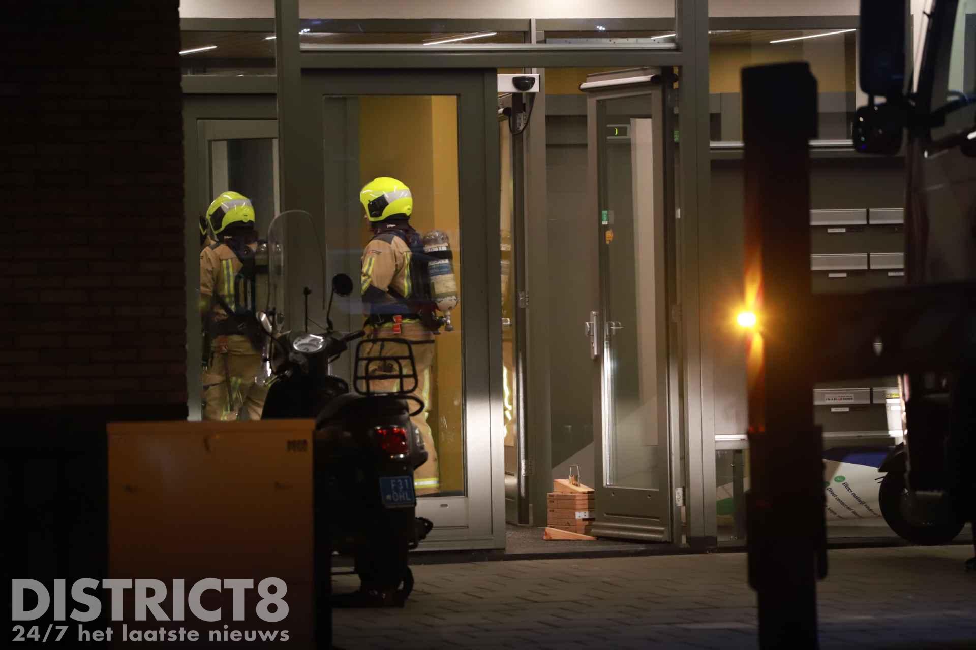 Twee etages van het appartementencomplex is ontruimd. Een persoon is onderzocht in de ambulance vanwege rookinhalatie.