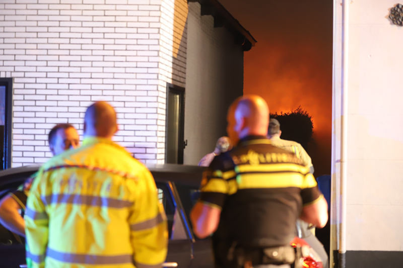 De brandweer werd met spoed gealarmeerd, binnen 10 minuten schaalde de brandweer op naar het sein “Grote Brand”. Ter plaatse bleek er achter een woning een flinke brand te woedde. De brandweer had de brand redelijk snel onder controle.
