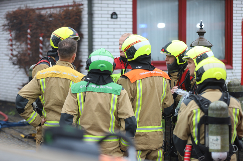 Uit de woning kwamen flinke rookpluimen. Er werd direct opgeschaald naar ‘middelbrand’ en later zelfs naar ‘zeer grote brand’.