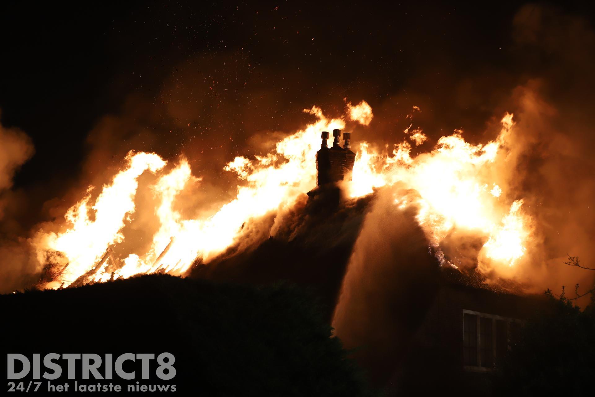 Grote brand verwoest woning met rietendak Rokkeveenseweg Zoetermeer