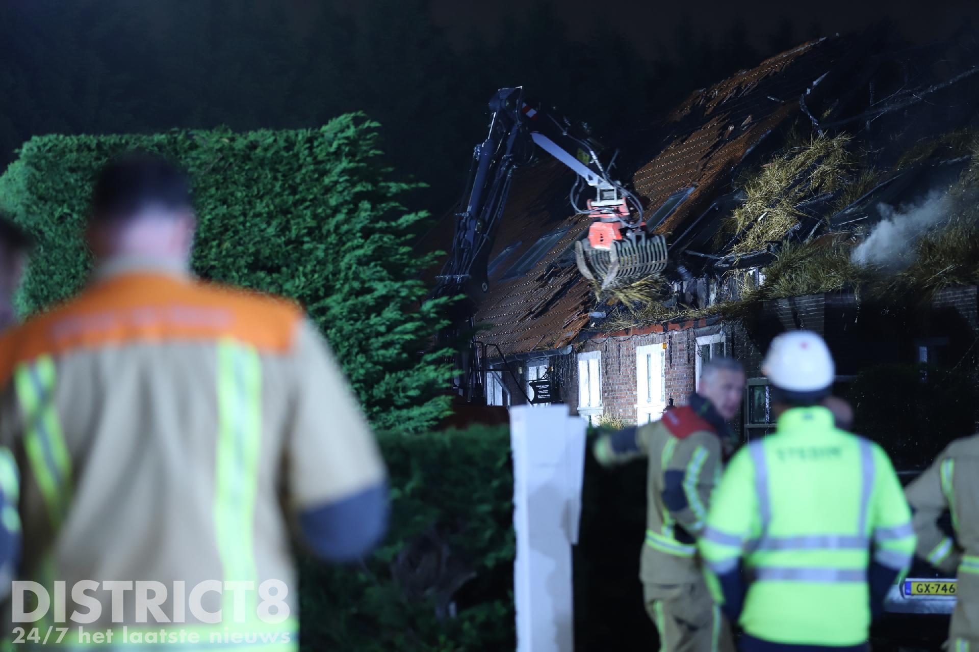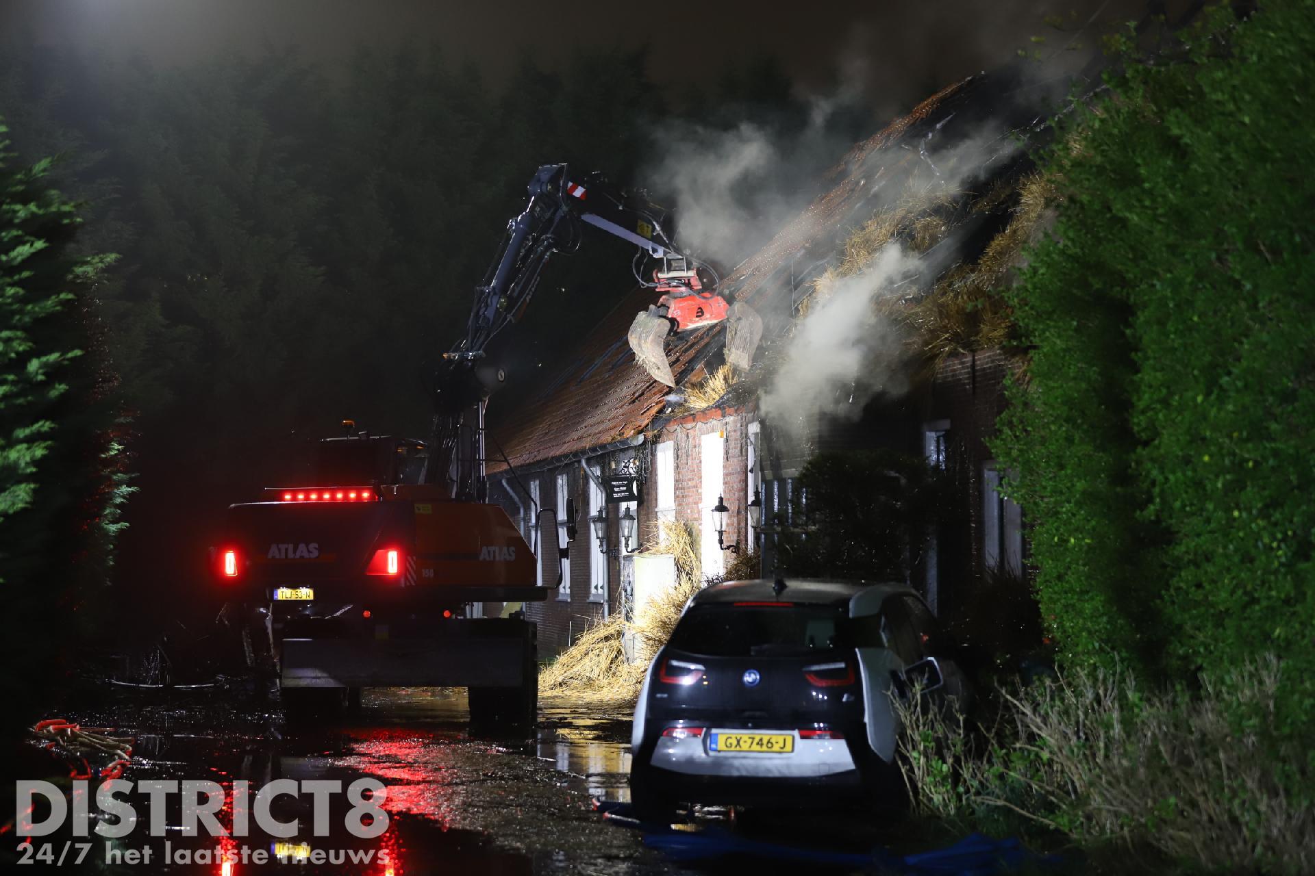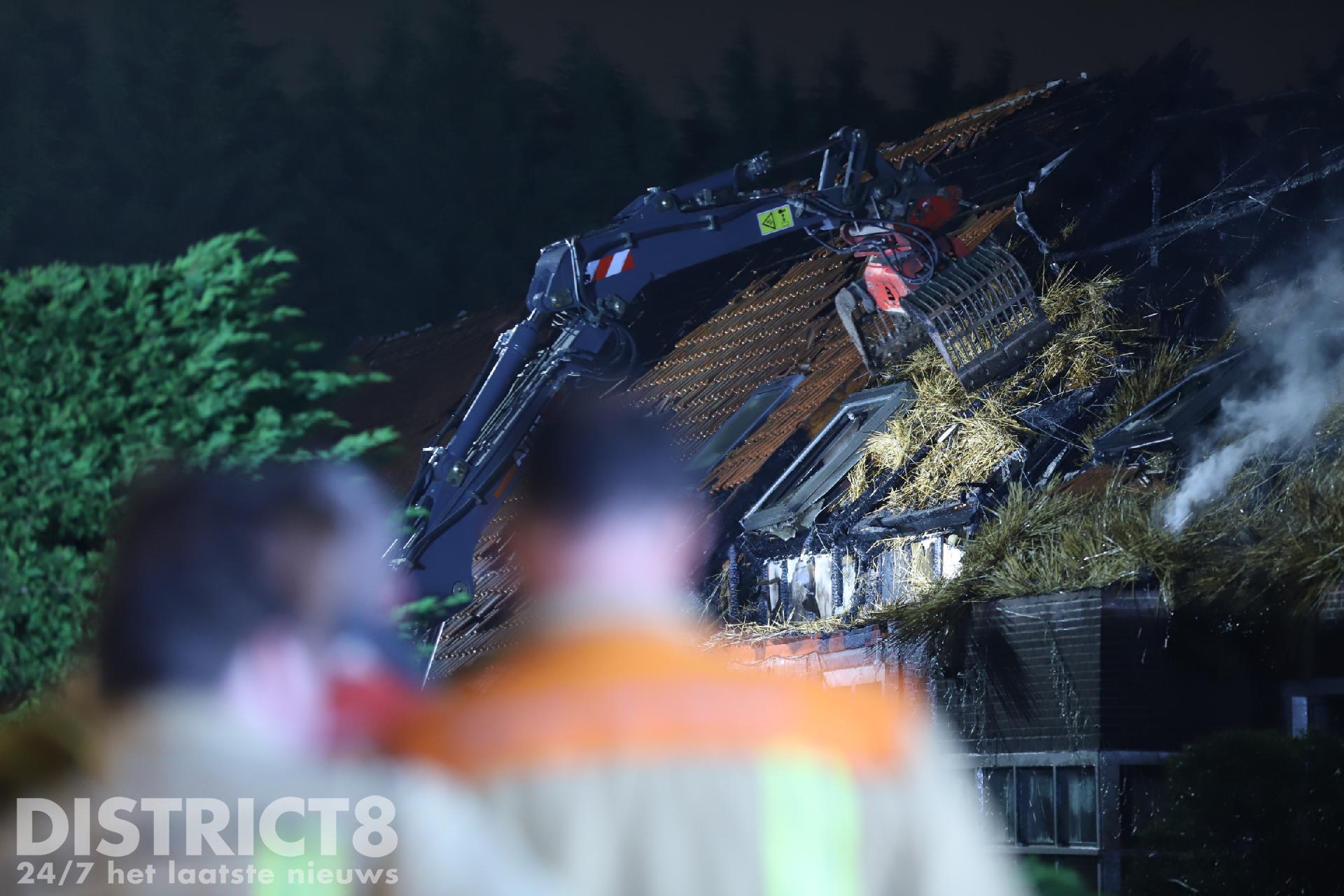 Uiteindelijk is een kraan ter plaatse gekomen om de restanten van het rieten dak uit elkaar te halen om de overgebleven hotspots te blussen, dit zou nog enige tijd in beslag nemen. De burgemeester van Zoetermeer, Michel Bezuijen is ter plaatse en praat onder andere met de hulpdiensten.