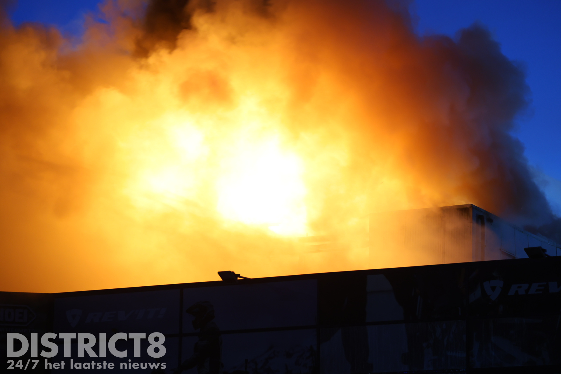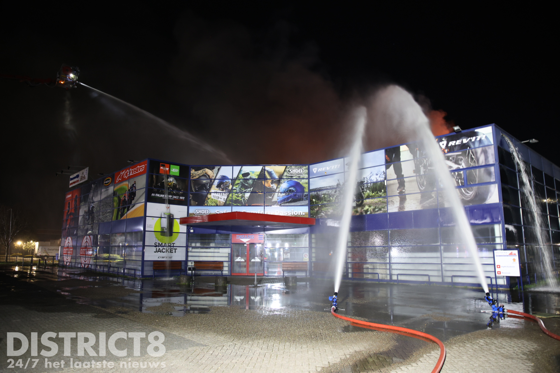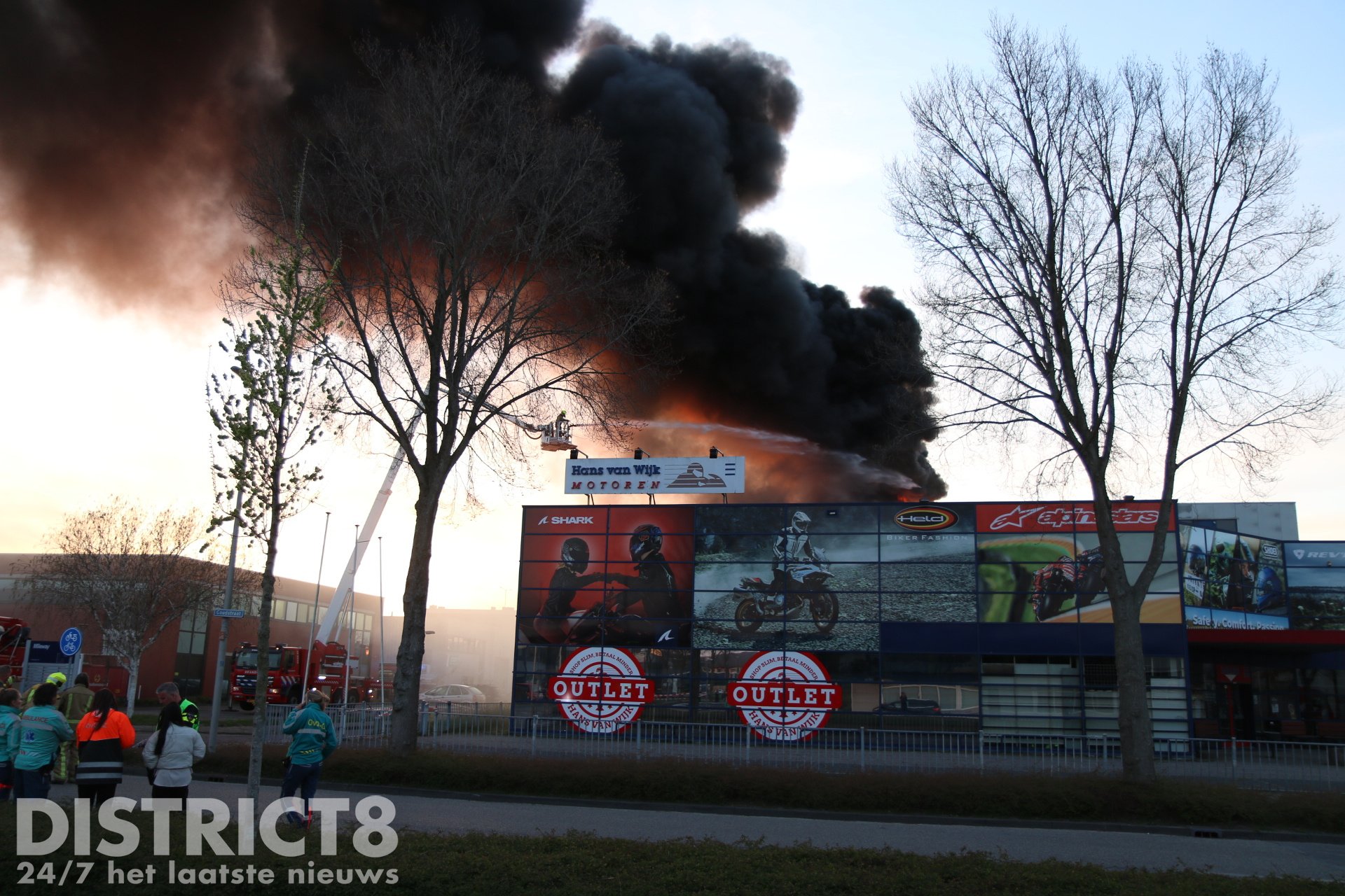 Rond kwart voor acht kwamen bij de brandweer meerdere meldingen binnen van een flinke brand. Er was toen reeds veel rook te zien en de brandweer werd snel gealarmeerd. De brand woedde in eerste instantie op het dak aan de zijkant van de motorzaak.