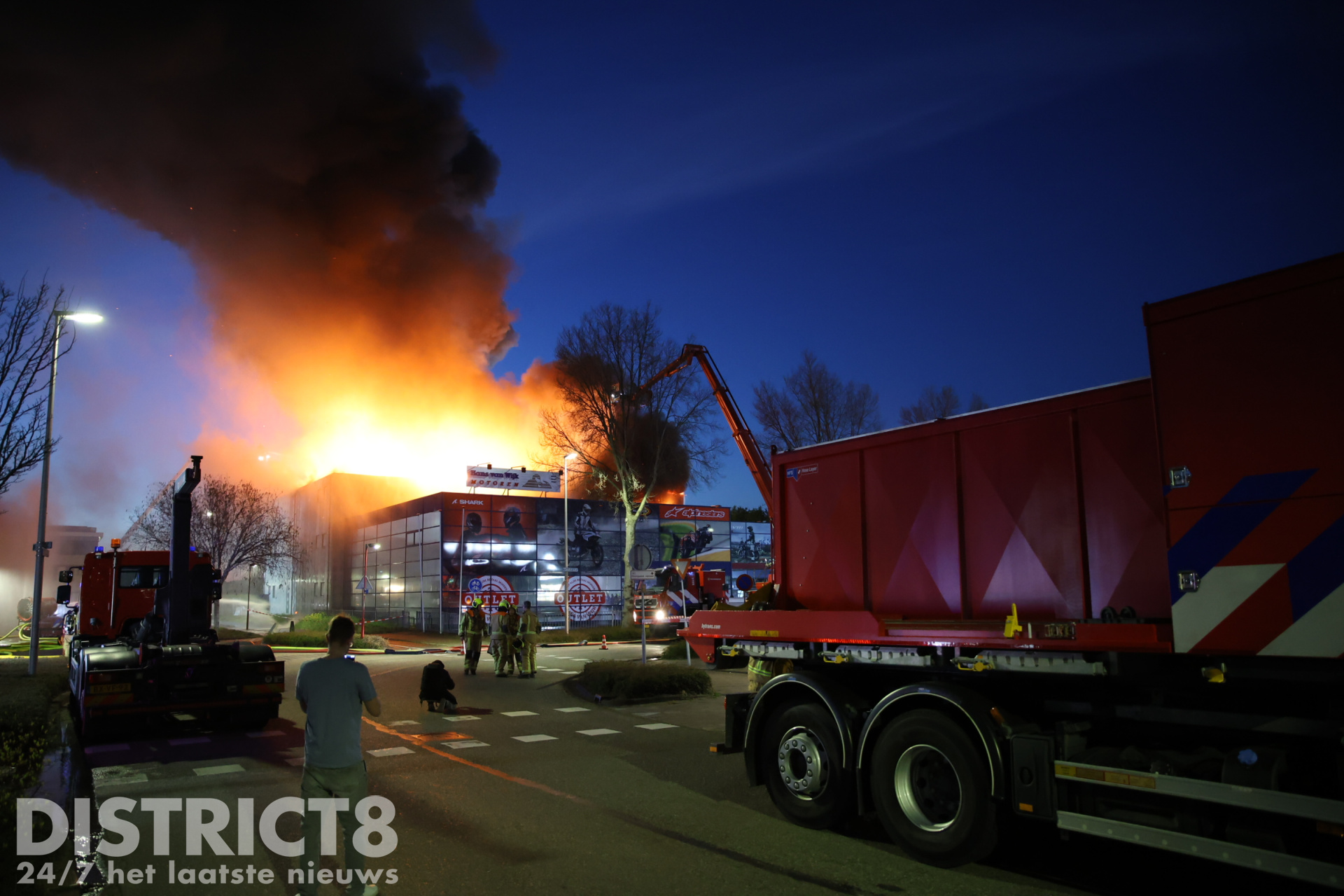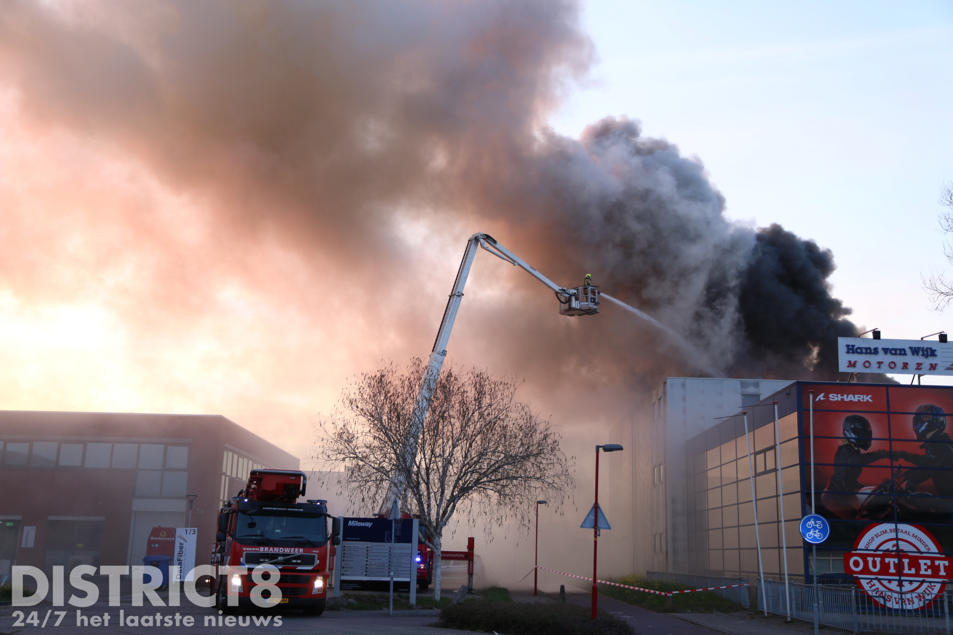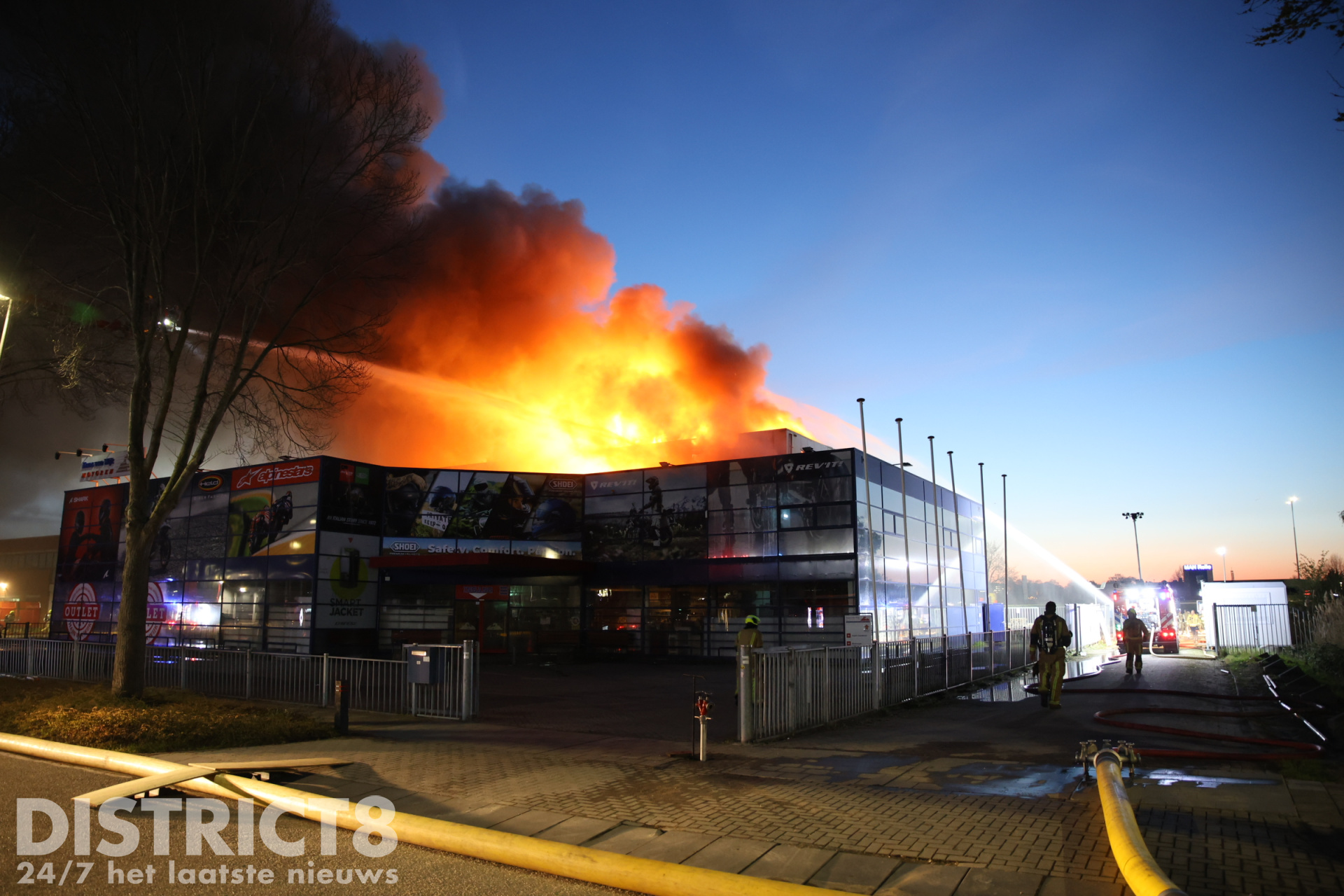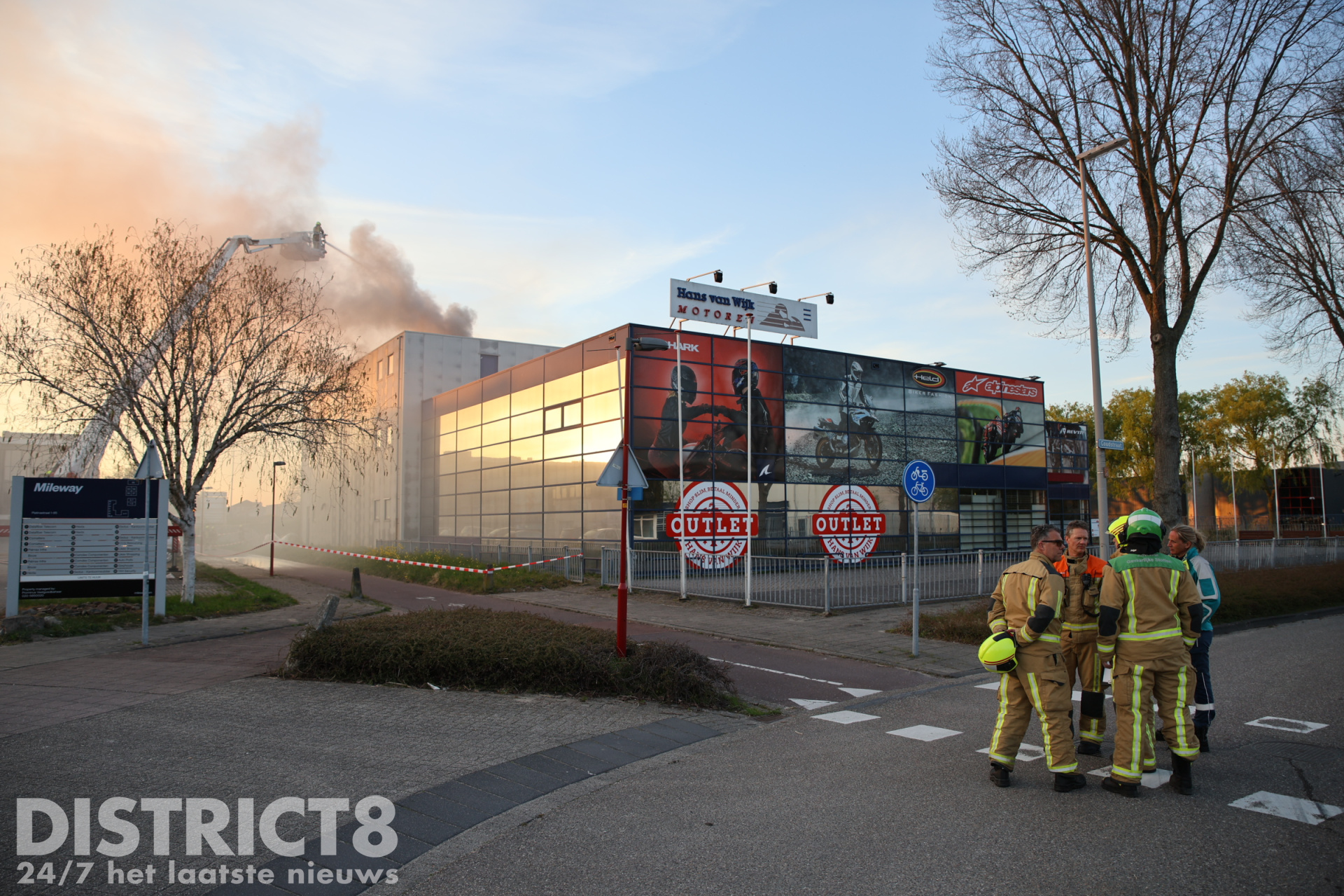 Rond kwart voor acht kwamen bij de brandweer meerdere meldingen binnen van een flinke brand. Er was toen reeds veel rook te zien en de brandweer werd snel gealarmeerd. De brand woedde in eerste instantie op het dak aan de zijkant van de motorzaak.