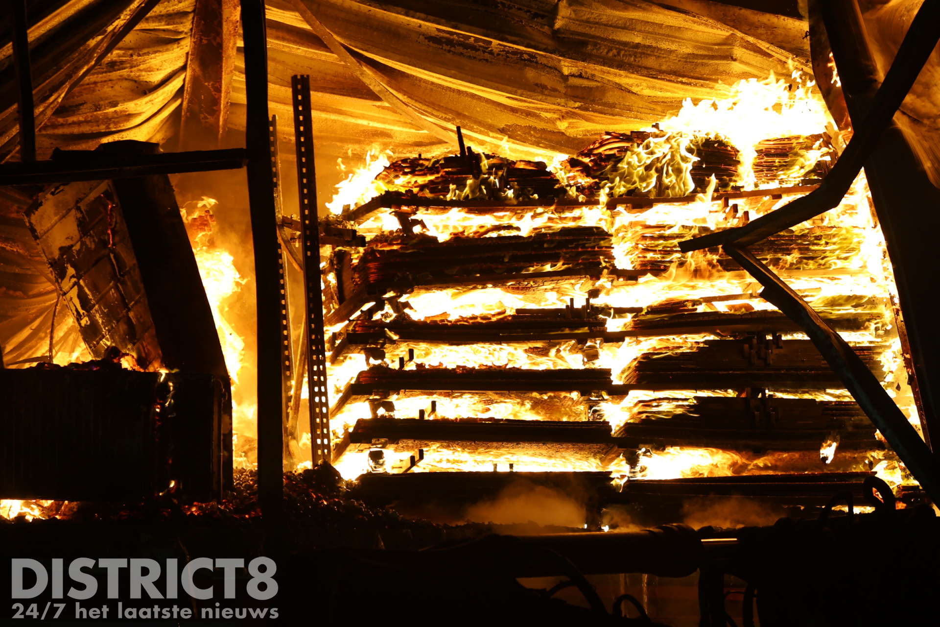 De brandweer verwacht tot zeker in de ochtend van woensdag 9 april bezig te zijn met het blussen van de brand. Hoe de brand is ontstaan is niet bekend.