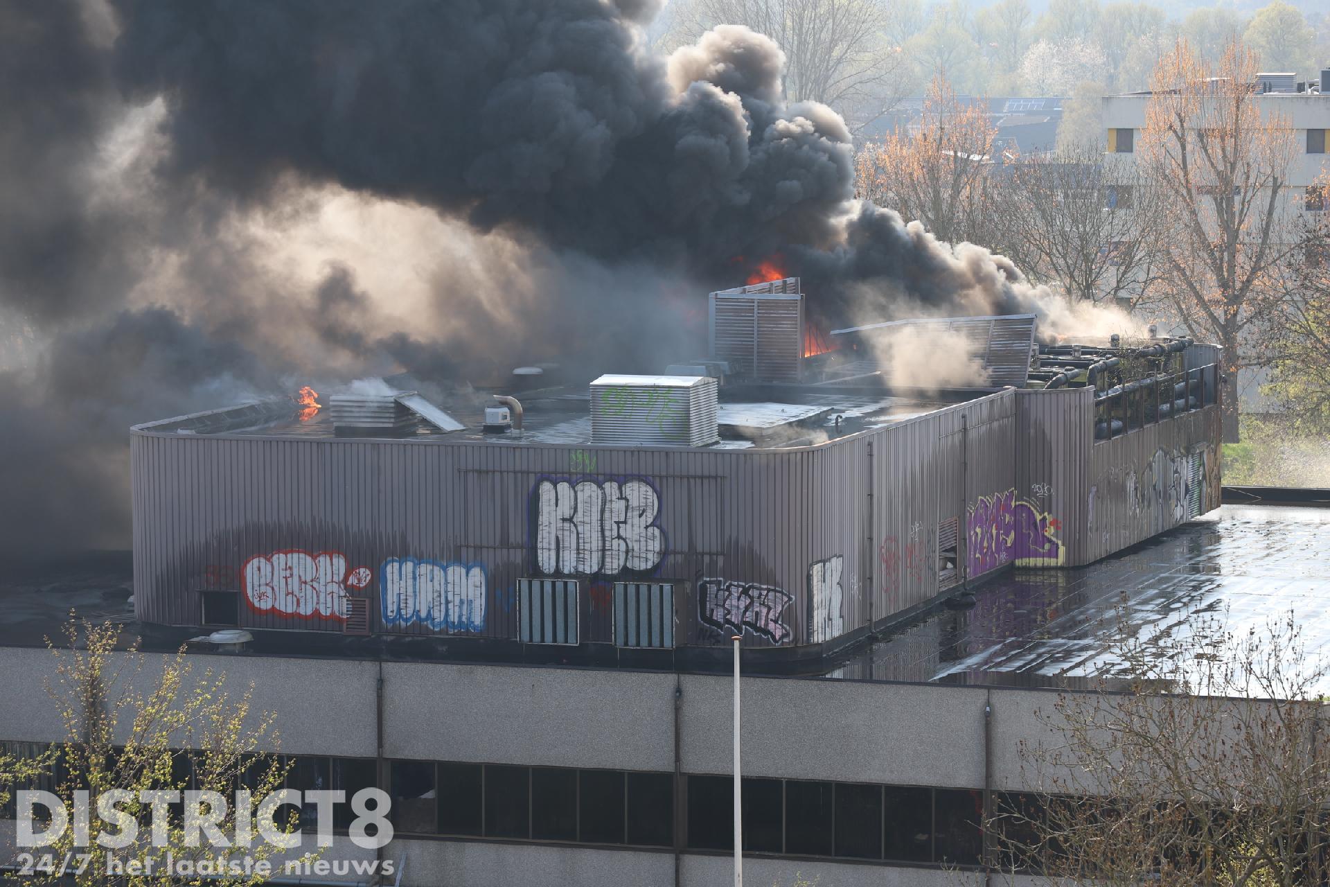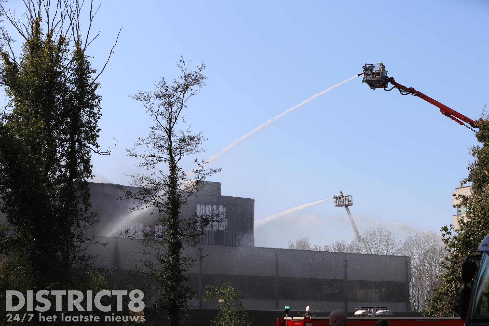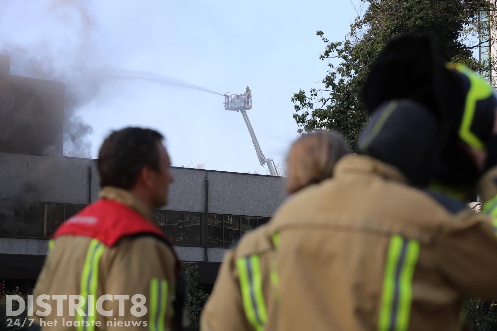 De omgeving is afgesloten om de hulpdiensten alle ruimte te geven. De brandweer heeft twee personen van het dak van het pand weten te redden.