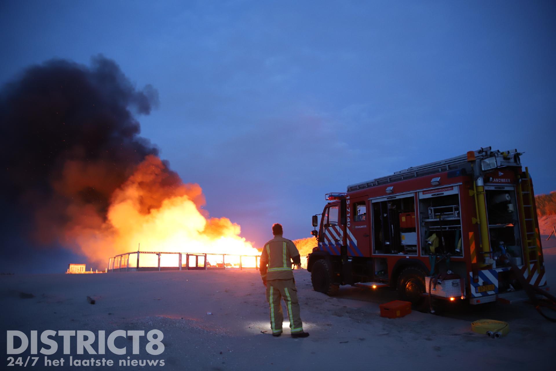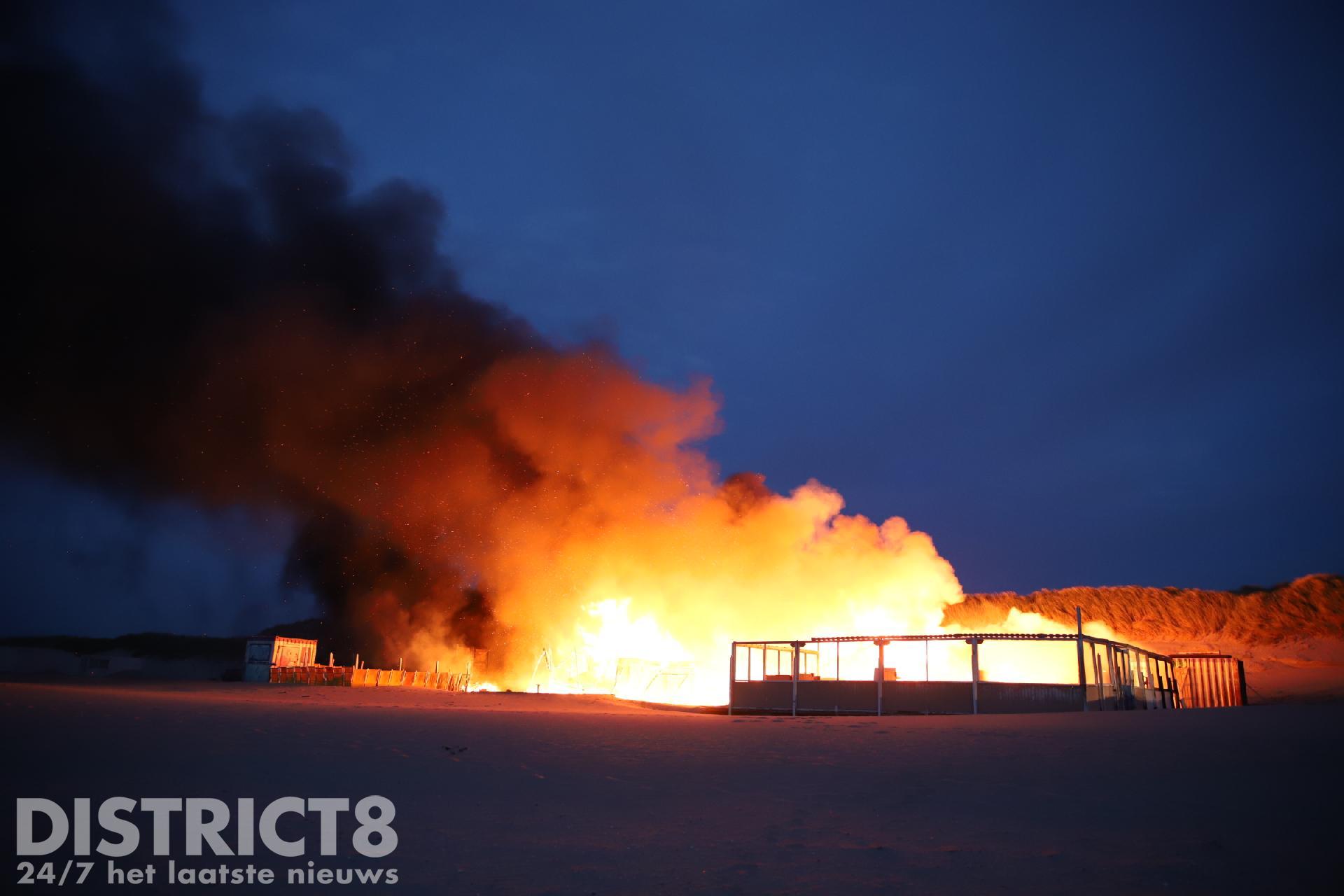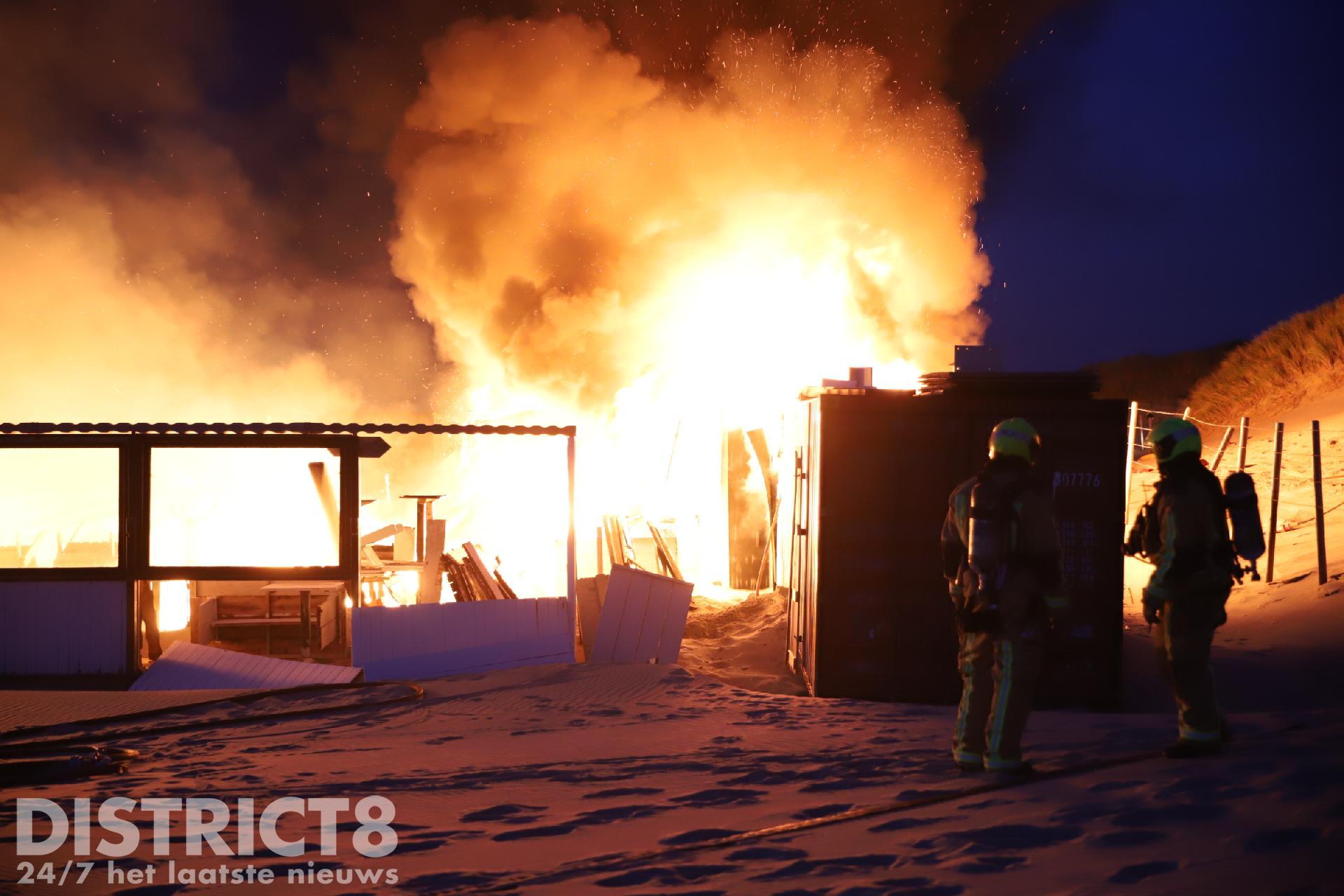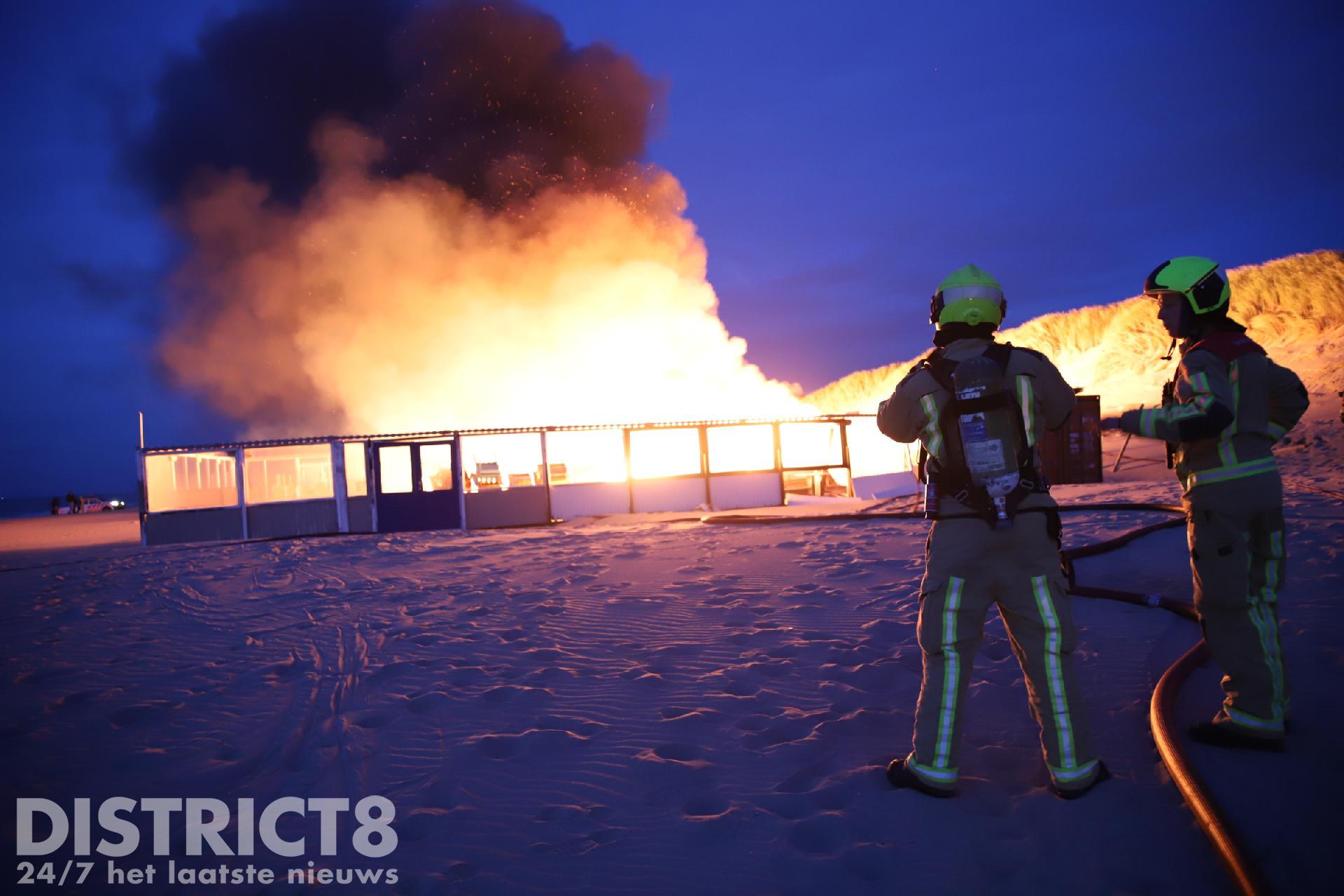 Toen de brandweer arriveerde konden zij alleen maar toekijken hoe de strandtent volledig in brand stond. Vanwege de moeilijke toevoer van bluswater konden de brandweermannen niet aan de slag.