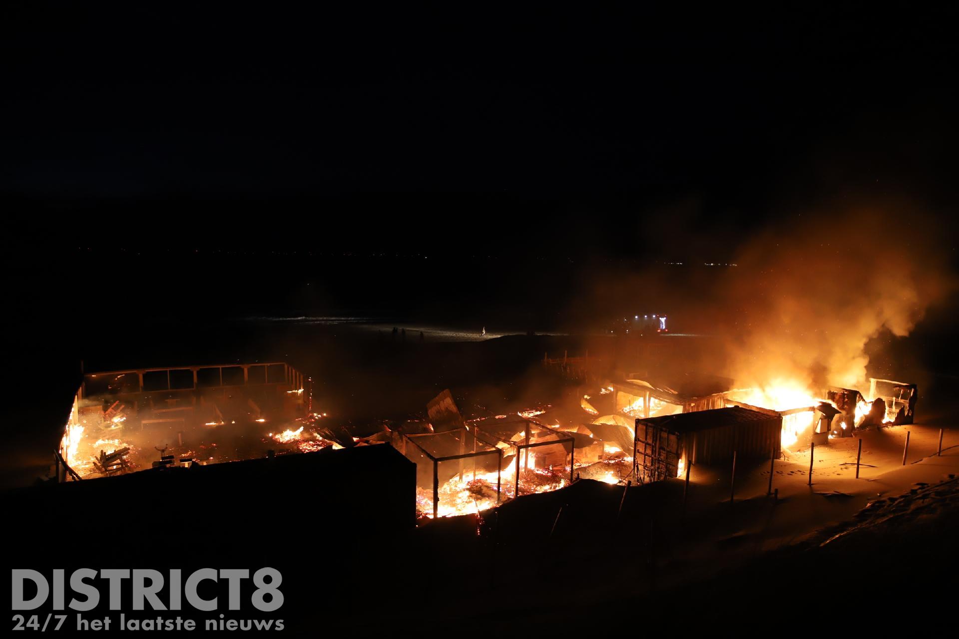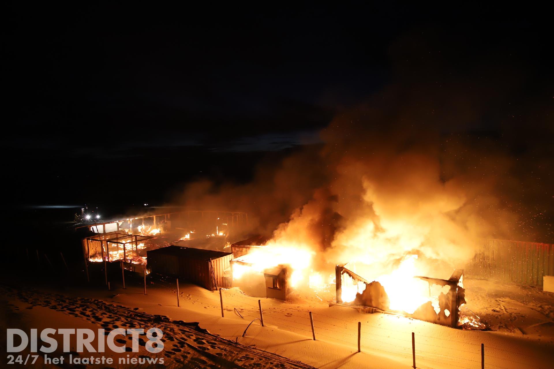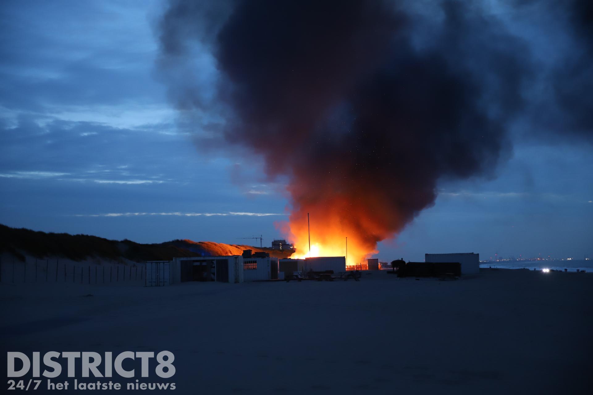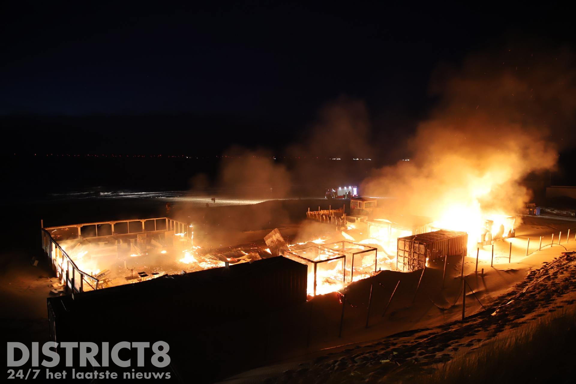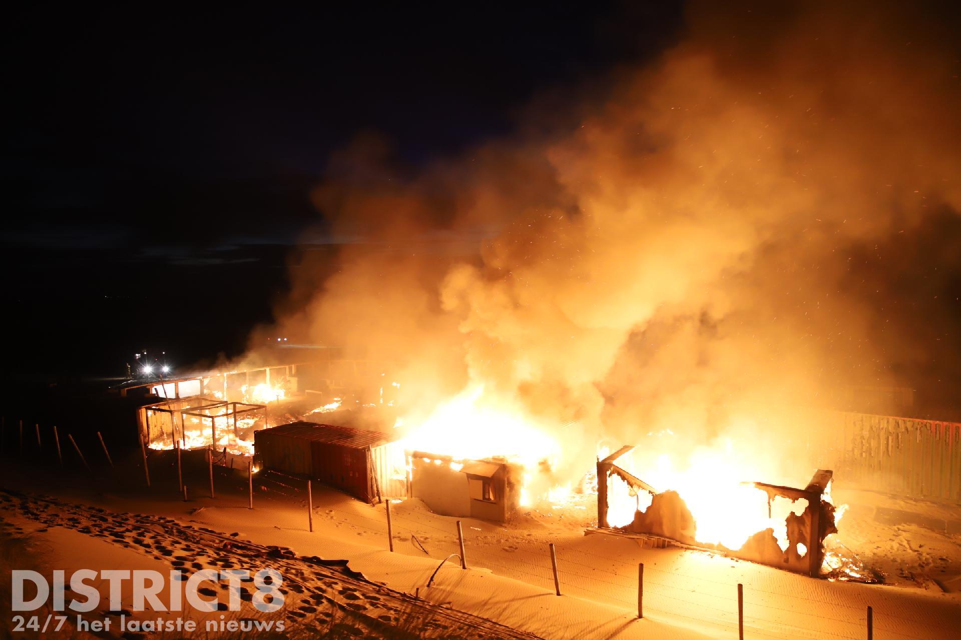 Toen de brandweer arriveerde konden zij alleen maar toekijken hoe de strandtent volledig in brand stond. Vanwege de moeilijke toevoer van bluswater konden de brandweermannen niet aan de slag.