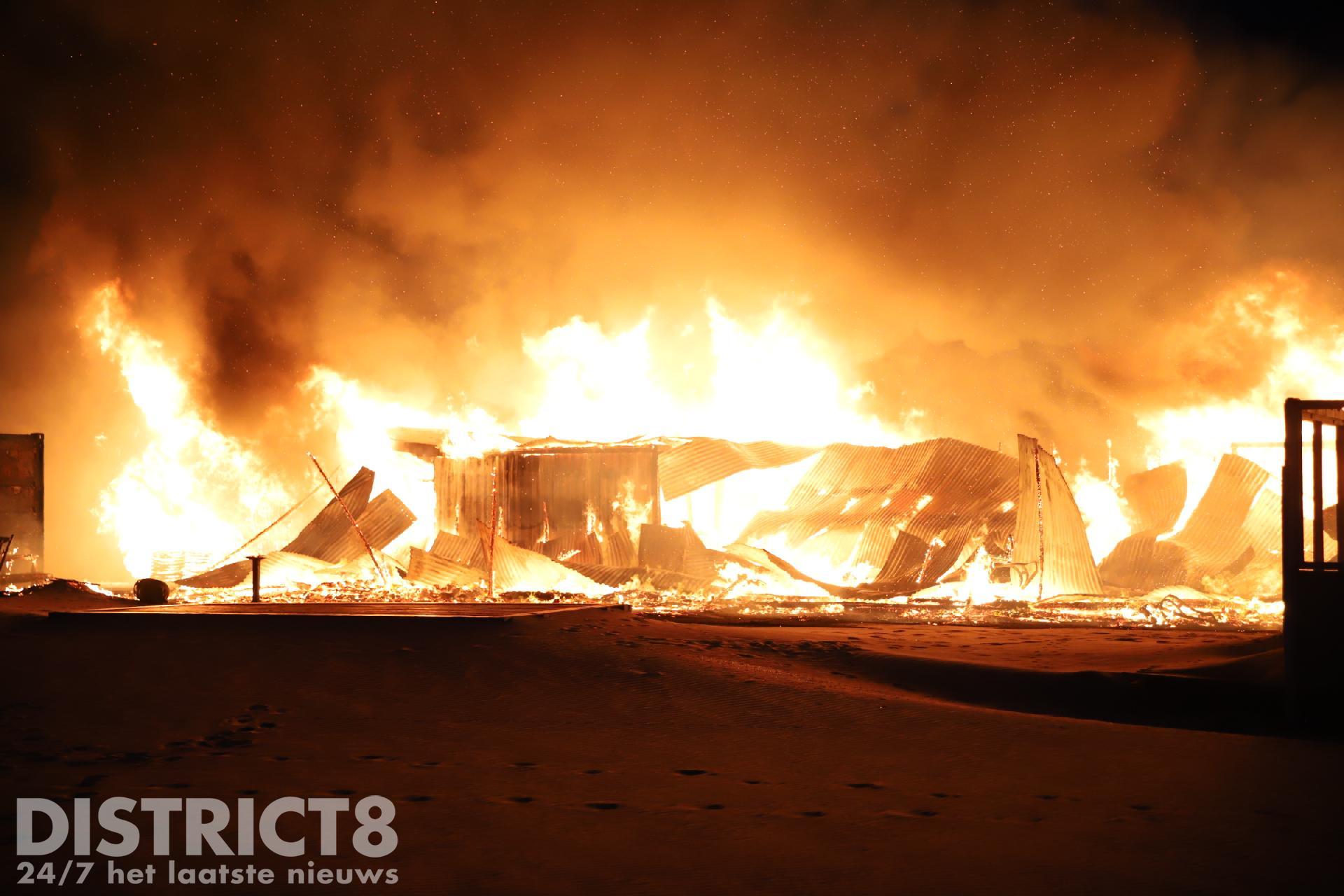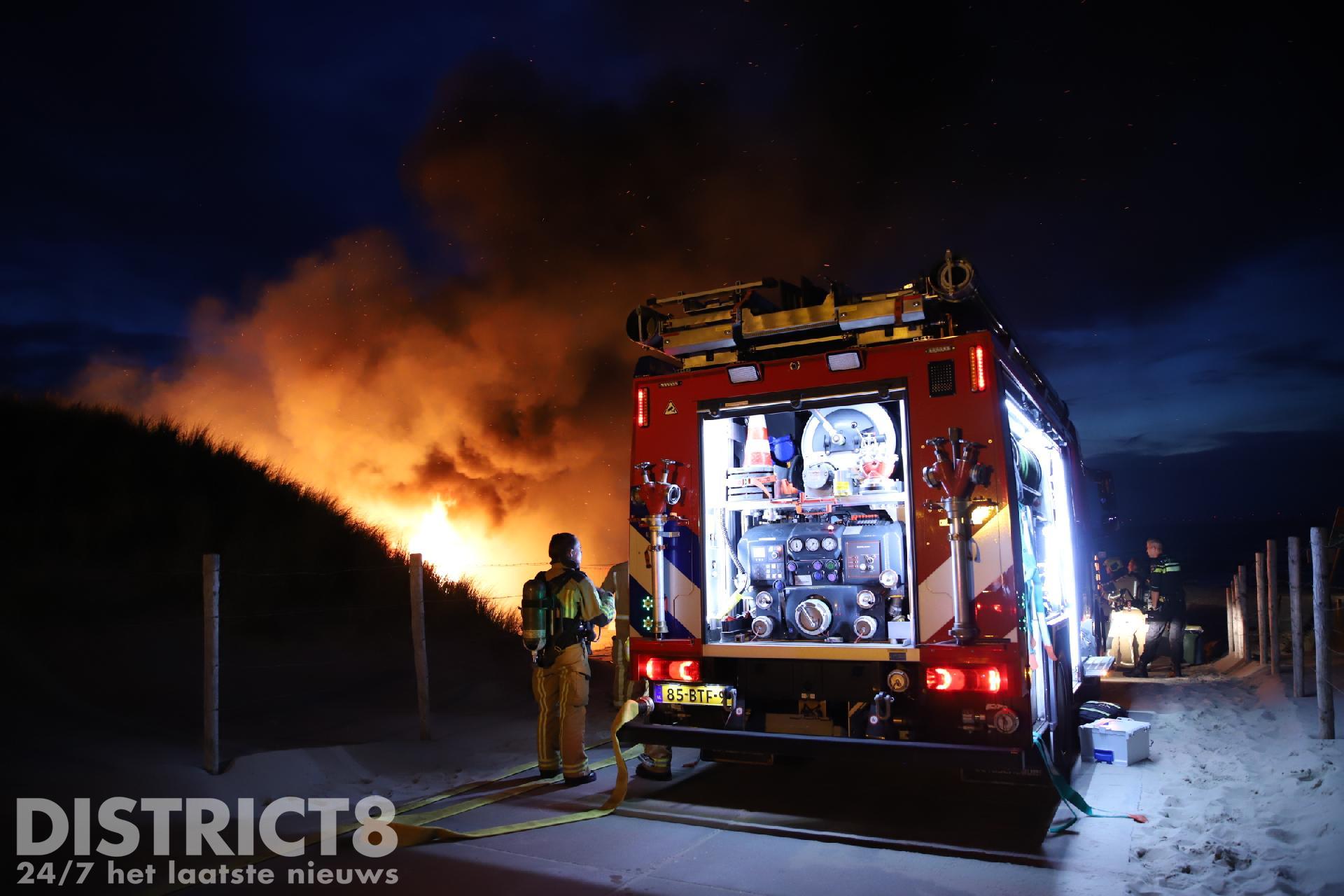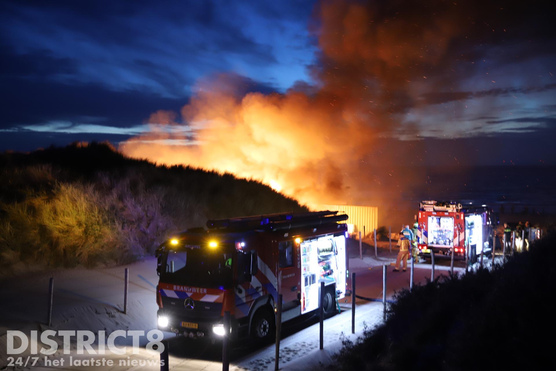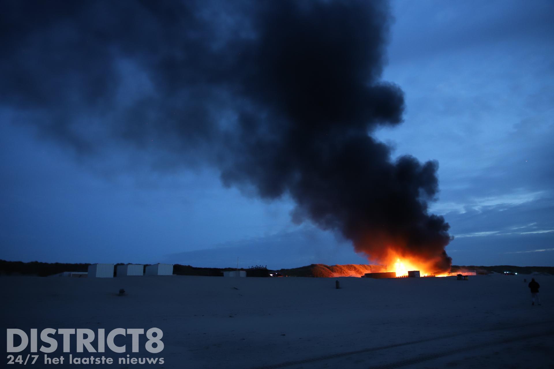 Toen de brandweer arriveerde konden zij alleen maar toekijken hoe de strandtent volledig in brand stond. Vanwege de moeilijke toevoer van bluswater konden de brandweermannen niet aan de slag.