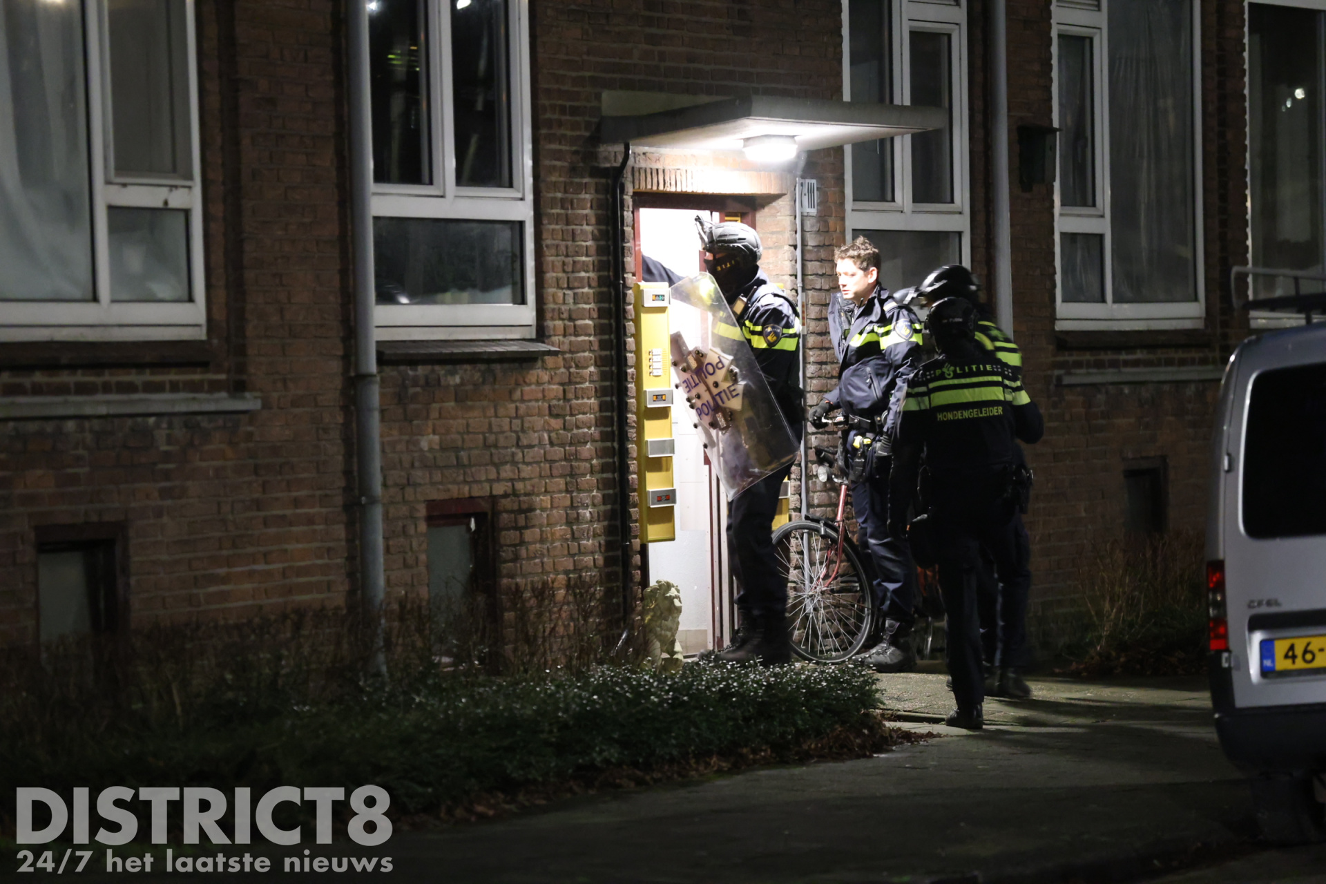 Agenten hebben met een schild een instap gedaan in de betreffende woning. In de woning vond een gesprek plaats tussen de agenten en de bewoner. De bewoner is uiteindelijk niet aangehouden.