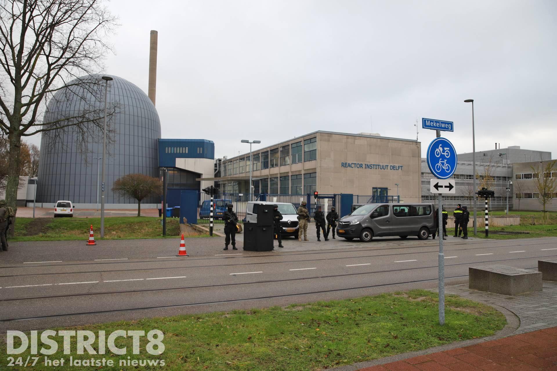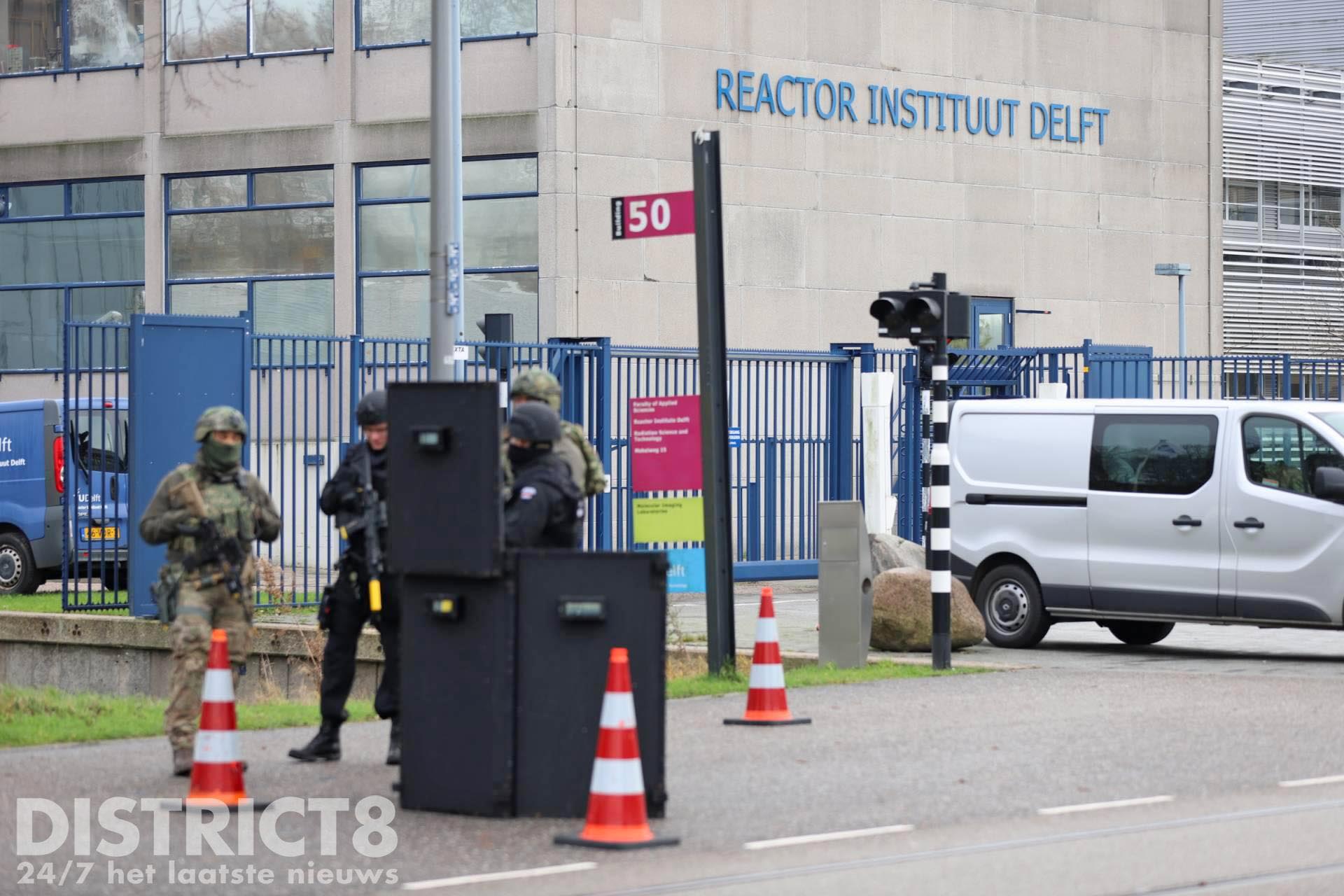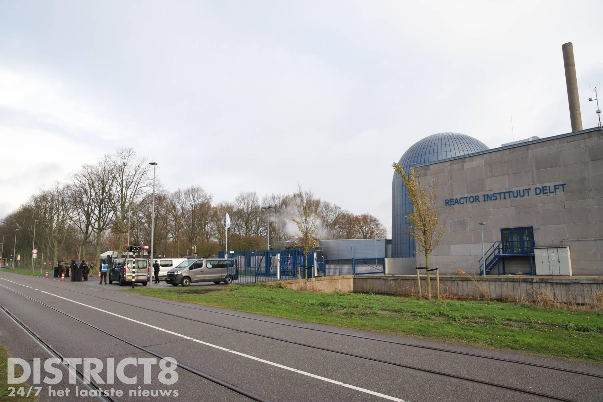 Delft – Donderdag 9 december zijn medewerkers van de Koninklijke Marechaussee (KMAR) de hele dag aan het oefenen bij het Reactor Instituut van de TU Delft aan de Mekelweg. Vanochtend vroeg verzamelde medewerkers van de KMAR en Defensie zich voor het gebouw.