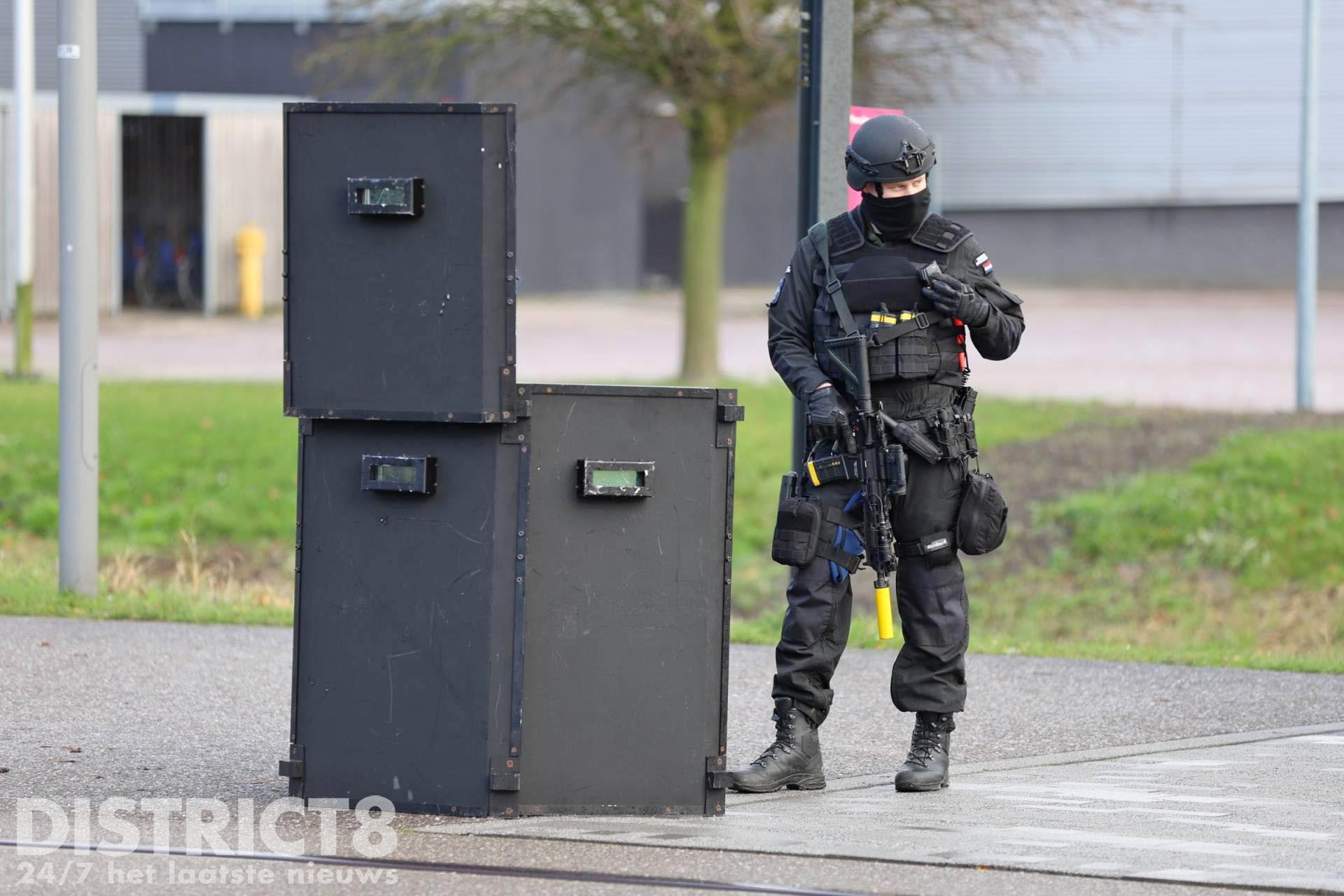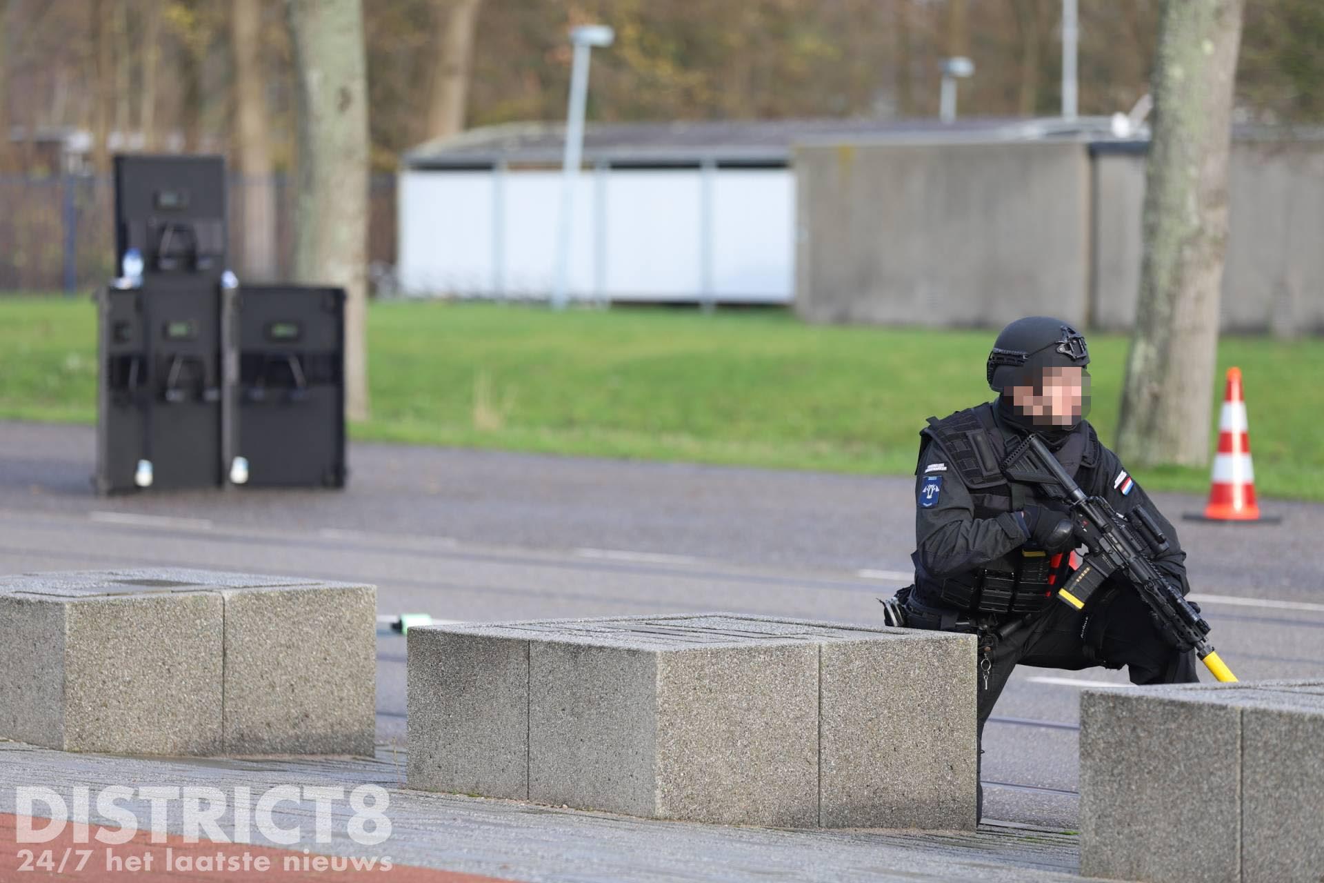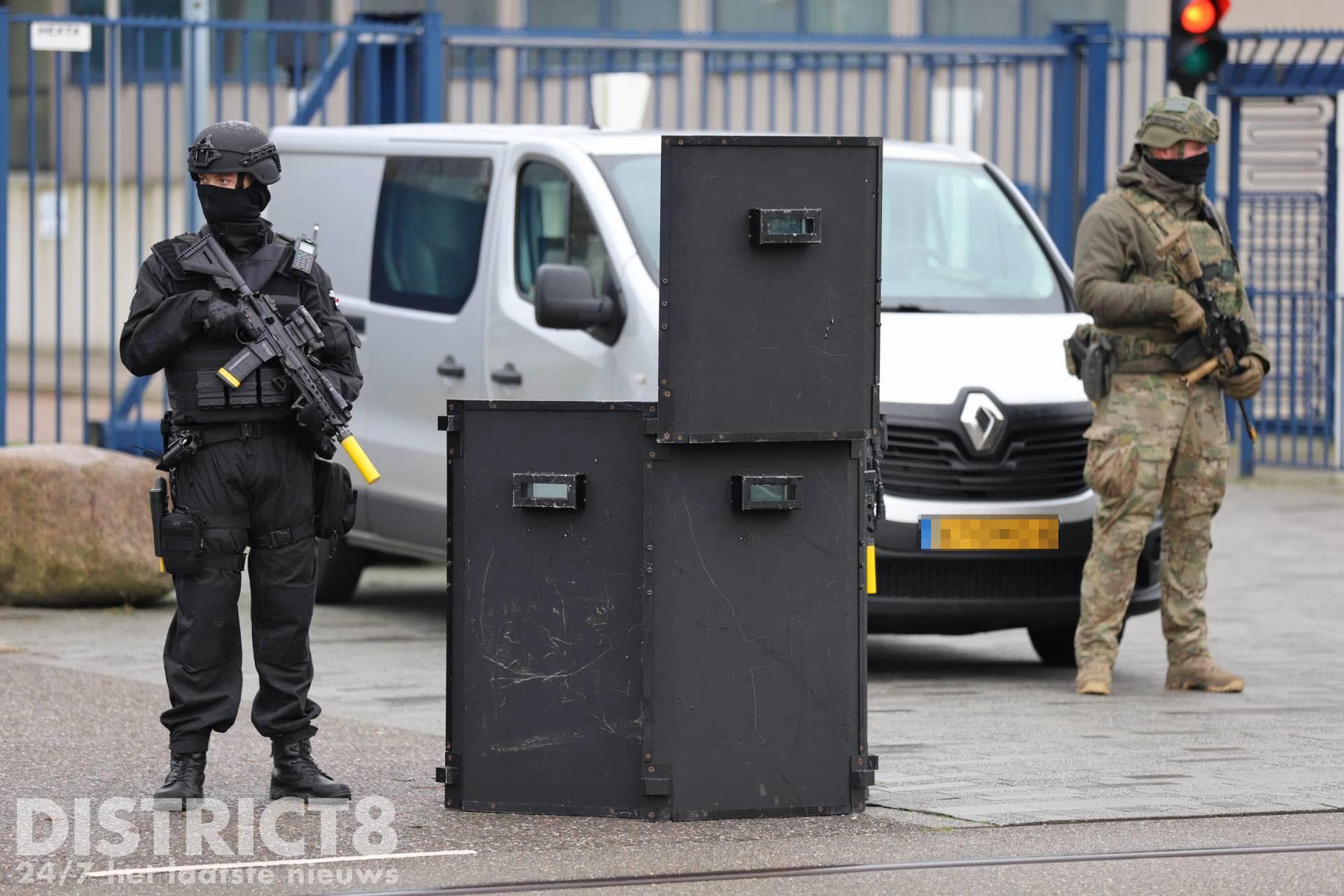 Delft – Donderdag 9 december zijn medewerkers van de Koninklijke Marechaussee (KMAR) de hele dag aan het oefenen bij het Reactor Instituut van de TU Delft aan de Mekelweg. Vanochtend vroeg verzamelde medewerkers van de KMAR en Defensie zich voor het gebouw.