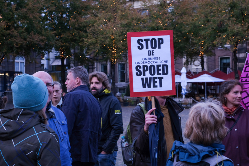 Den Haag – Op het Plein in Den Haag is vanavond een demonstratie bezig tegen de spoedwet.