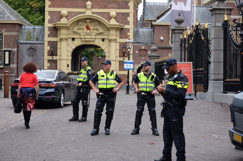 De politie heeft met meerdere eenheden de toegangen tot het Binnenhof hermetisch afgesloten, evenals de toegang tot de Tweede Kamer. Actievoerders die zich op deze plaatsen ophouden worden gesommeerd naar het Malieveld te vertrekken. De aangekondigde demonstratie zou plaatsvinden op het Lange Voorhout en de Lange Vijverberg in Den Haag. De politie spreekt in deze omgevingen voorbijgangers aan en vraagt iedereen die hier niets te zoeken heeft te vertrekken. Actievoerders worden naar het Malieveld verwezen.