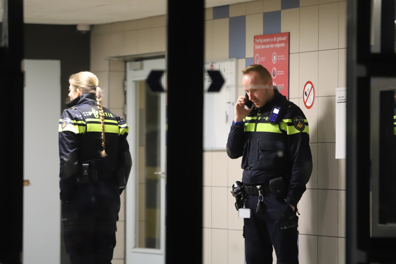 Meerdere politie-agenten hebben daarna de flat betreden, uiteindelijk kwamen agenten met eén persoon naar buiten. De man was door de agenten aangehouden, de man werkte bij zijn aanhouding licht tegen.