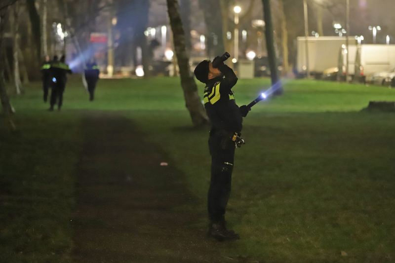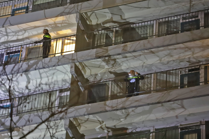 Ter plaatse hebben agenten de gehele flat bekenen met zaklampen en verrekijkers. Aan de buitenzijde was niemand meer te zien, hierop is de brandweer retour gegaan.