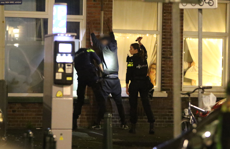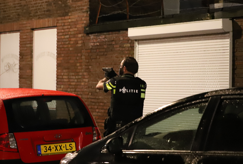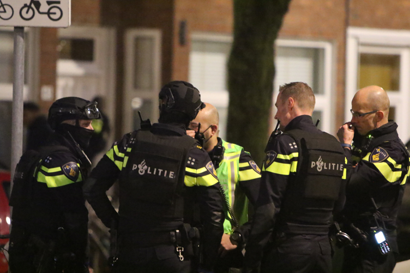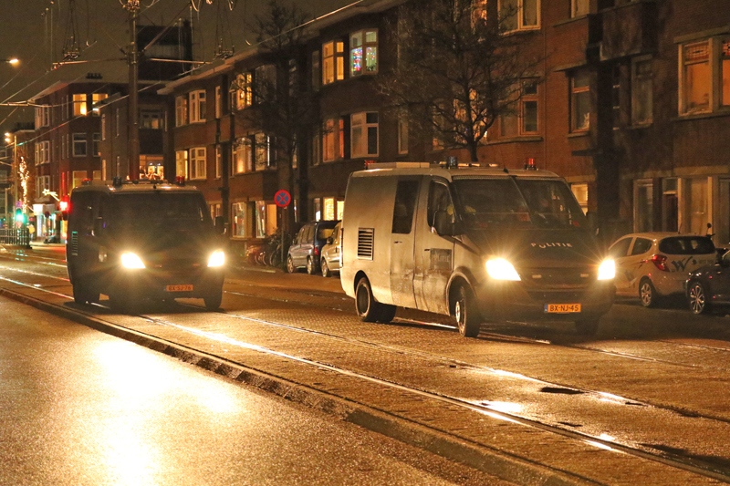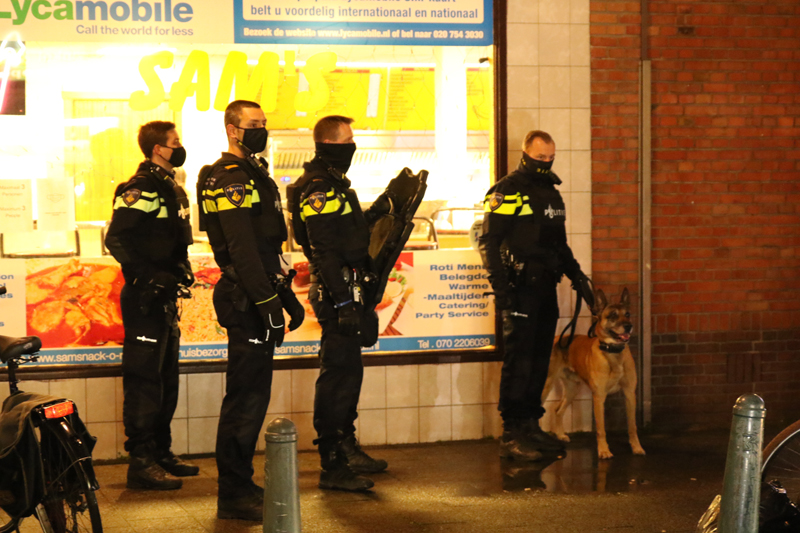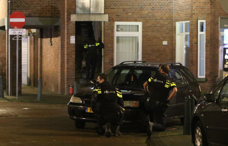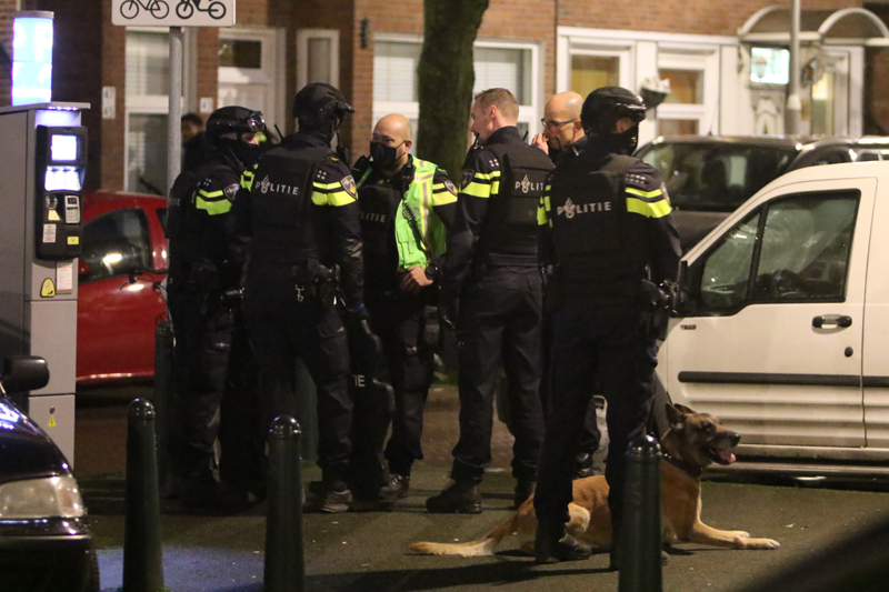Agenten in kogelwerende vesten sloten direct de Isingstraat af, ook hondengeleiders kwamen op de melding af met een diensthond en schilden.