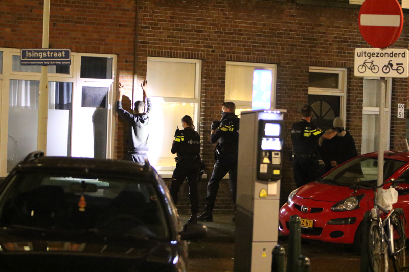 Na lang overleg besloot de politie in te grijpen en een inval te doen in een woning aan de Isingstraat. Uit de woning werden daarna direct meerdere verdachten gehaald. Agenten stonden buiten met getrokken vuurwapens.