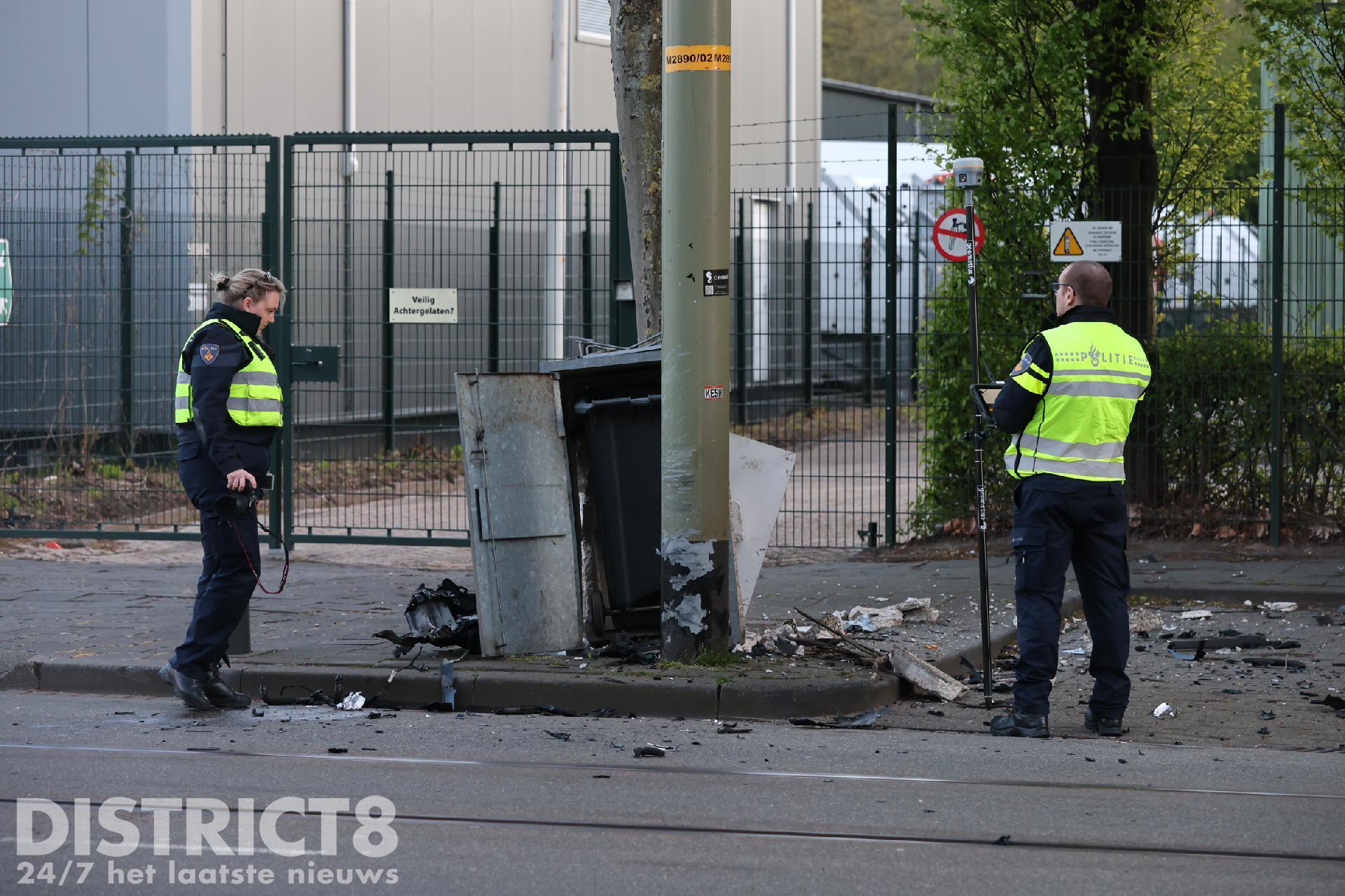 Even na half acht ging het mis op de kruising van De Werf en de Zinkwerf. Een automobilist ramde hierbij een betonnen prullenbak.