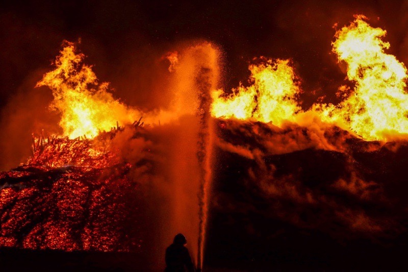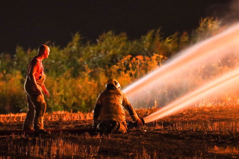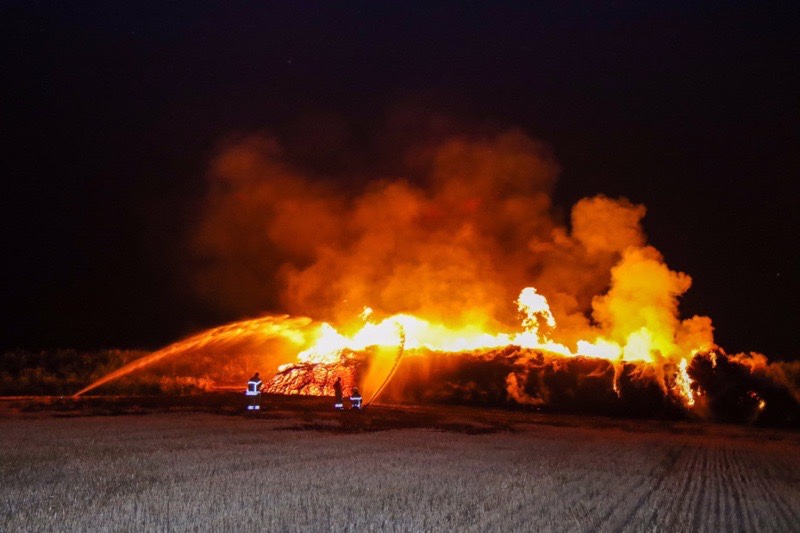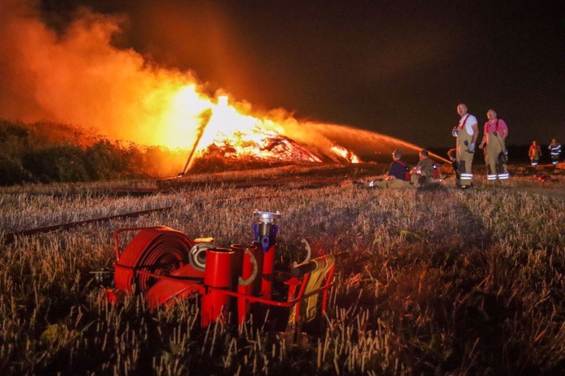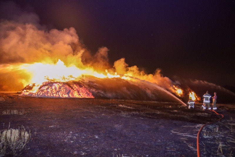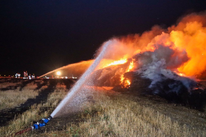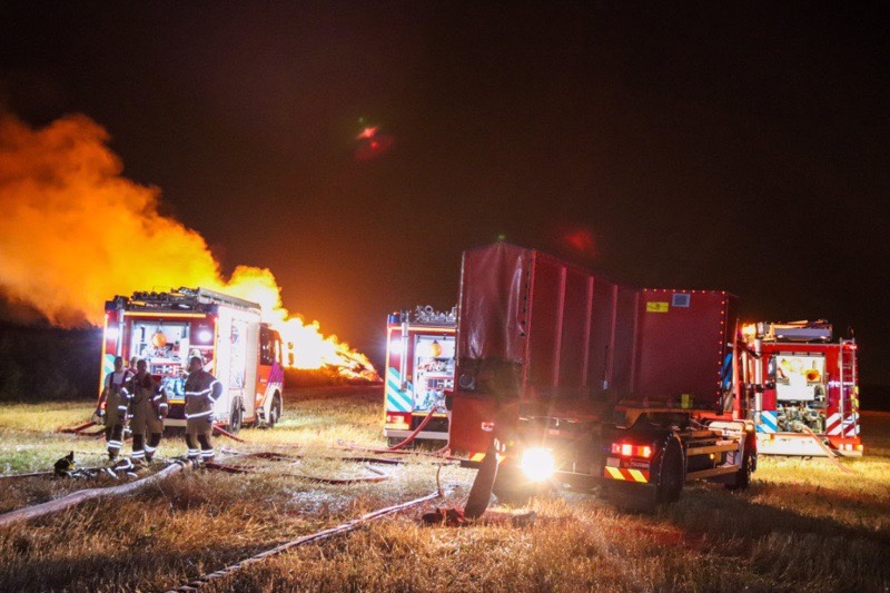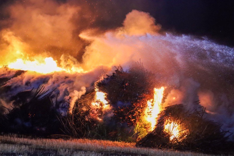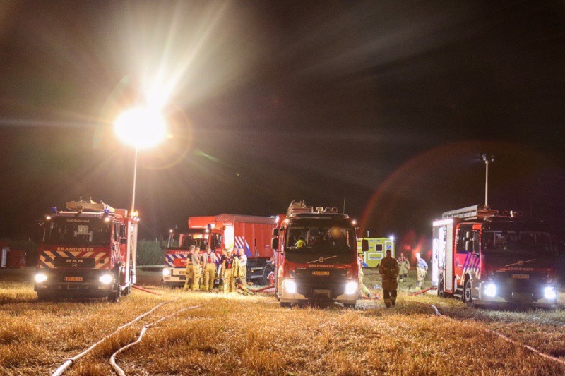 Heinenoord – De brandweer is vannacht druk bezig geweest met een grote buitenbrand in Heinenoord. Een grote stapel bossage stond in brand.