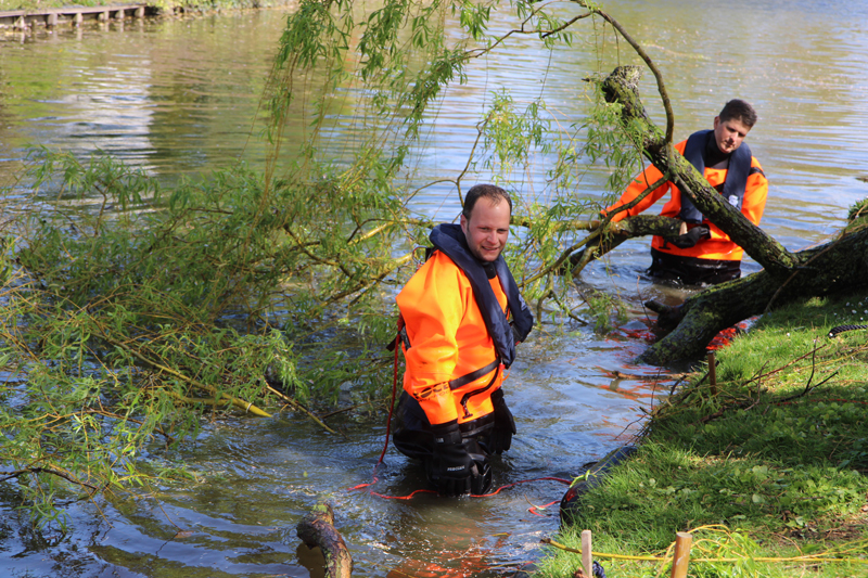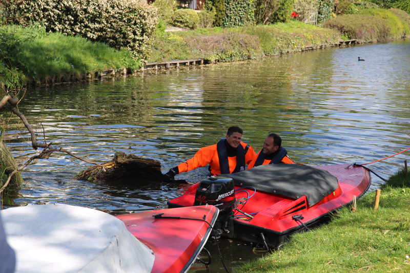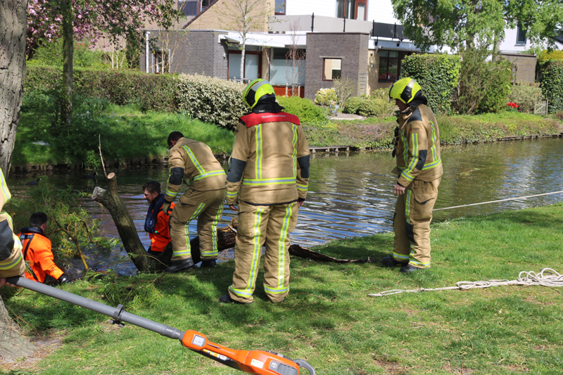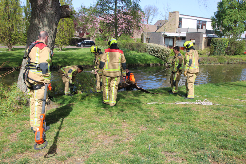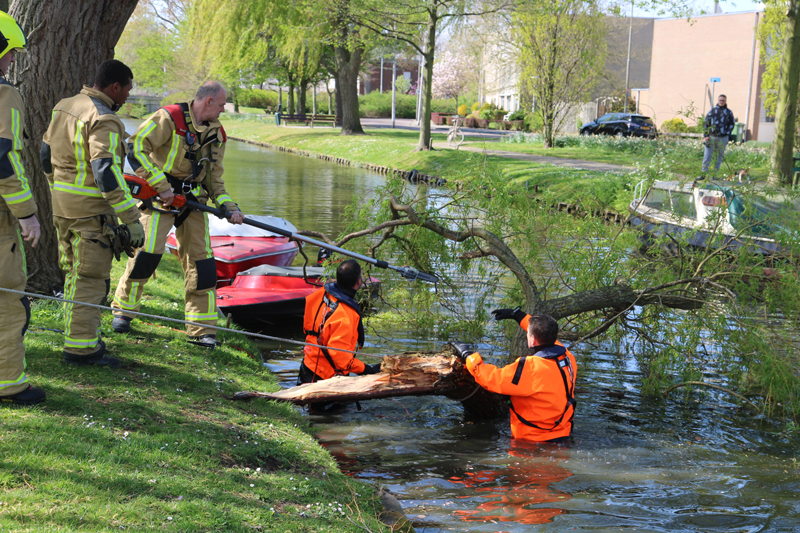Ter plaatse bleek er een grote tak te zijn afgebroken van een boom. Een bootje wat in het water lag raakte niet beschadigd door de afgebroken tak. De brandweer heeft de tak in stukken gezaagd en op de kant gelegd. De gemeente is in kennis gesteld om de tak op te halen.
