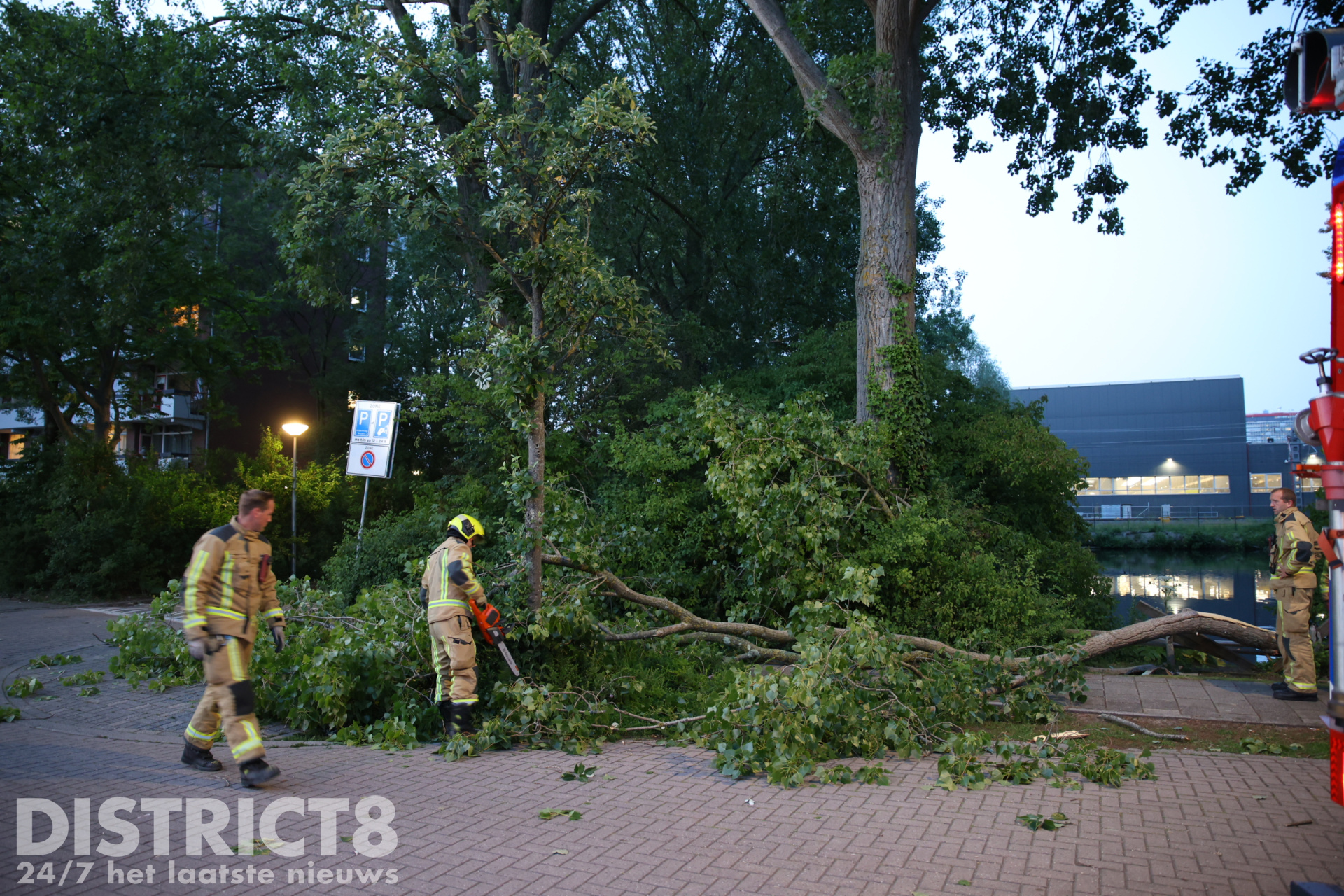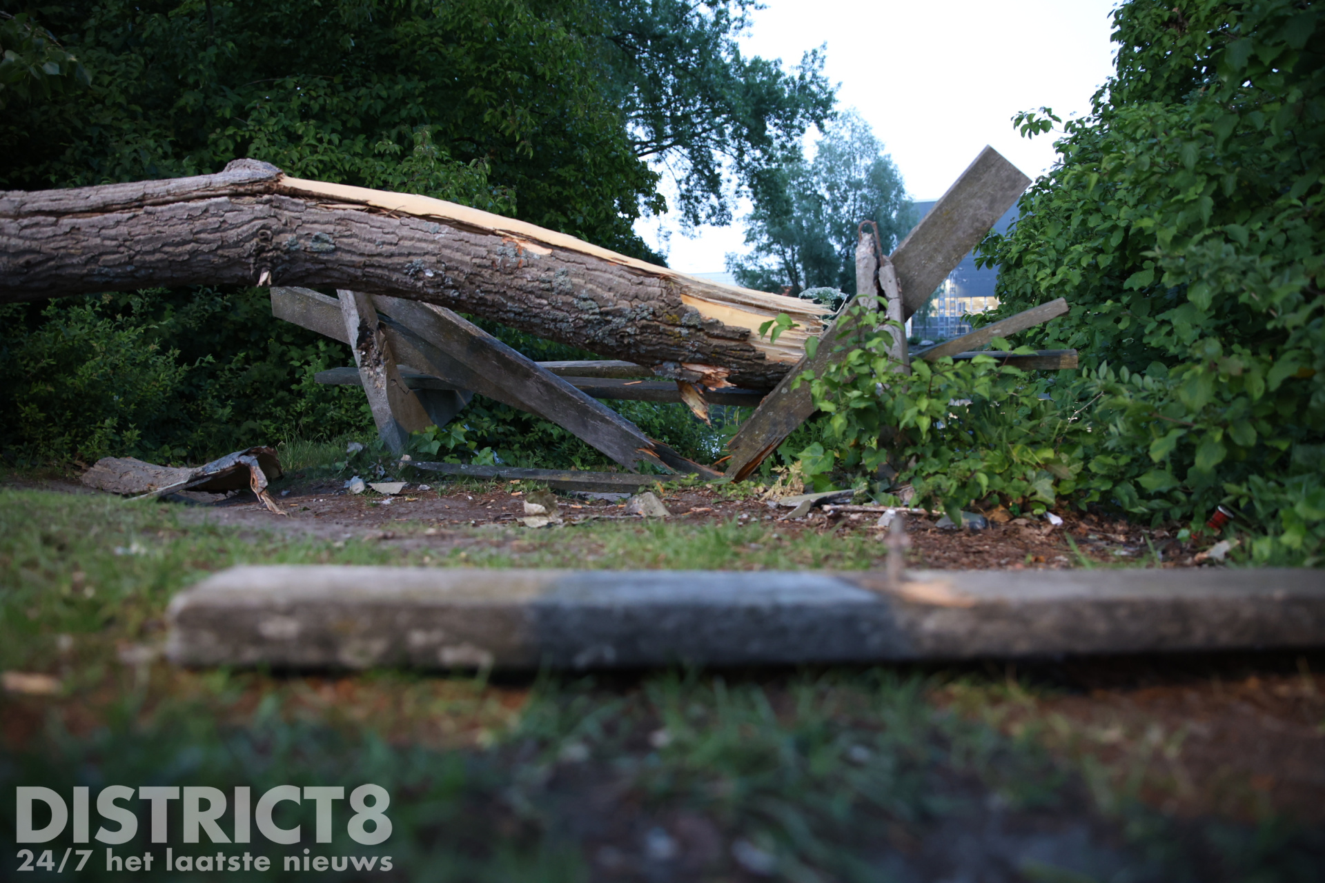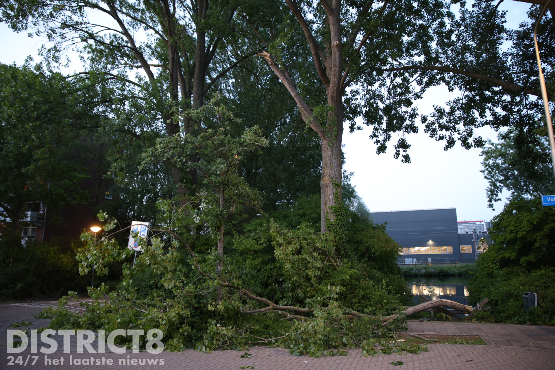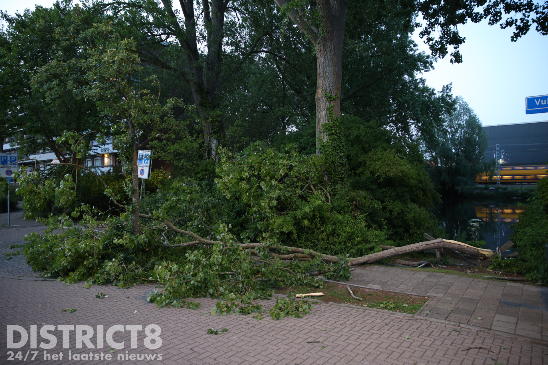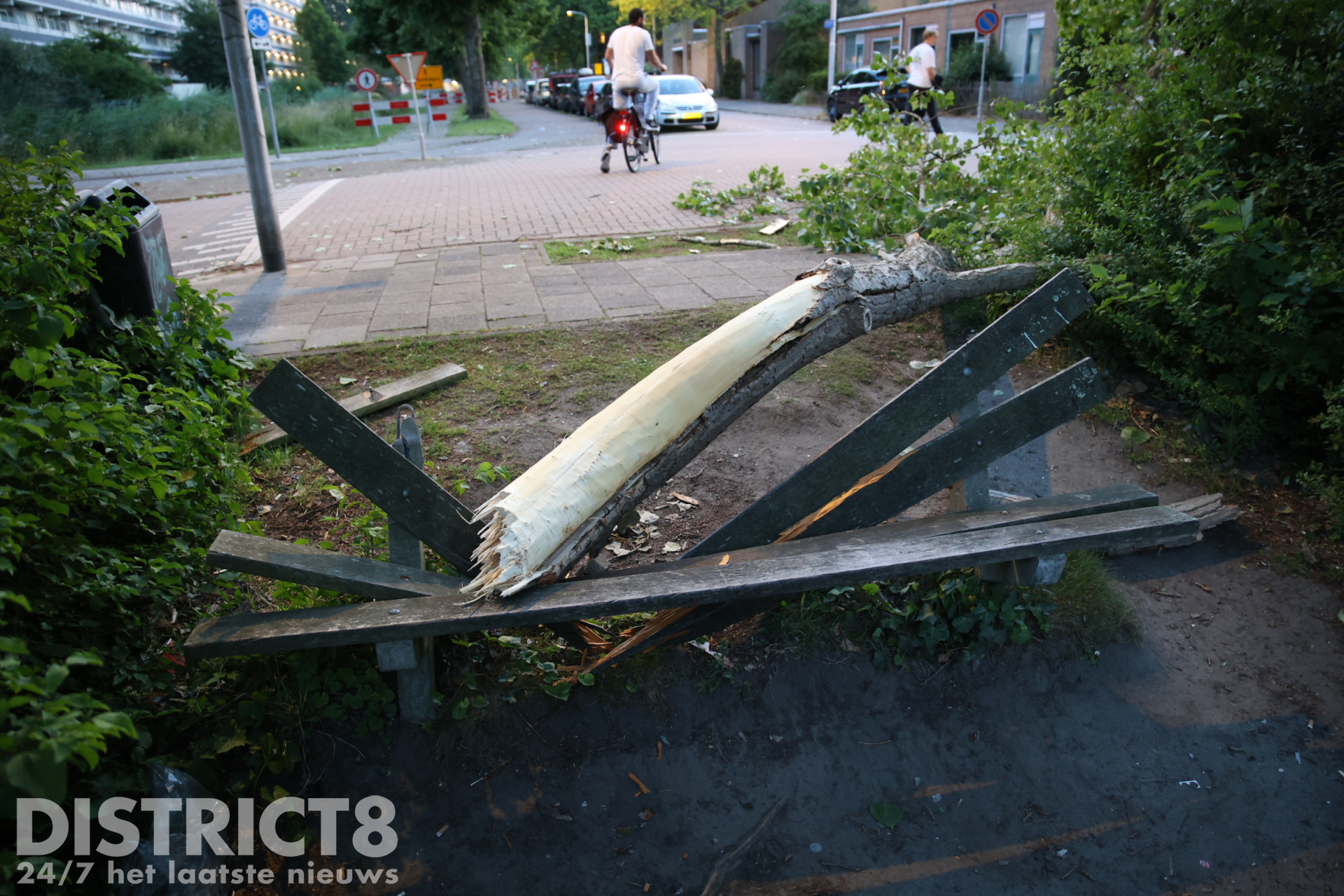 Delft – Op de Vulcanusweg in Delft is donderdagavond 12 juni een grote tak van een boom afgebroken en terechtgekomen op een bankje.