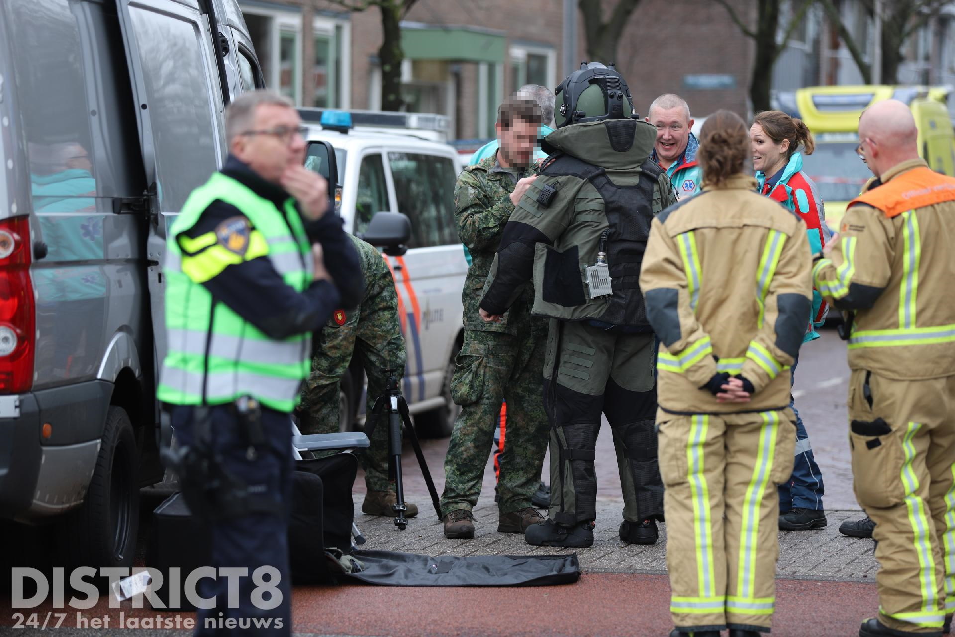 De EOD doet inmiddels onderzoek en maakt in bompak foto’s van de handgranaat. Hierna heeft een medewerker van de EOD de handgranaat van de deurklink gehaald en veiliggesteld. De Forensische Opsporing (FO) heeft hierna sporen veilig gesteld en fotos gemaakt.