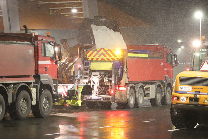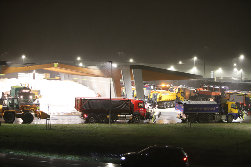 In verband met de verwachte sneeuwval is het zaterdagavond 6 februari al druk bij het strooizout-depot aan de Rijksstraatweg in Delfgauw. Strooizout wagens van zowel de gemeente als van Rijkswaterstaat rijden af- en aan om bijgevuld te worden met strooizout.