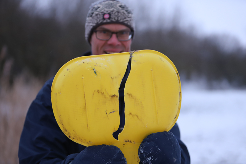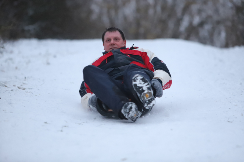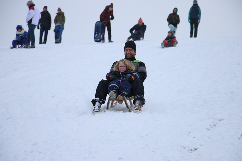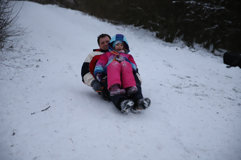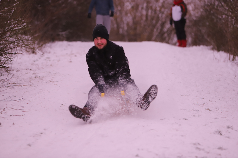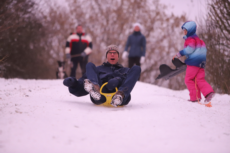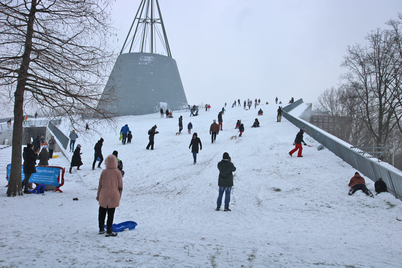 Ook bij de Mekelweg in Delft glijden mensen met hun slee van de helling.