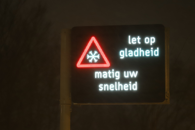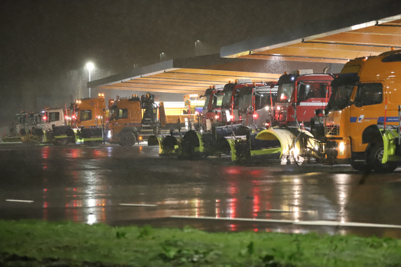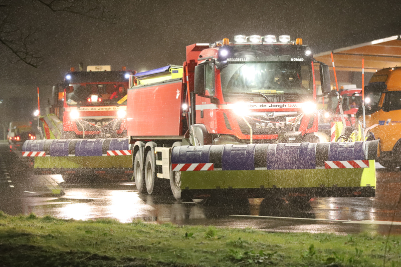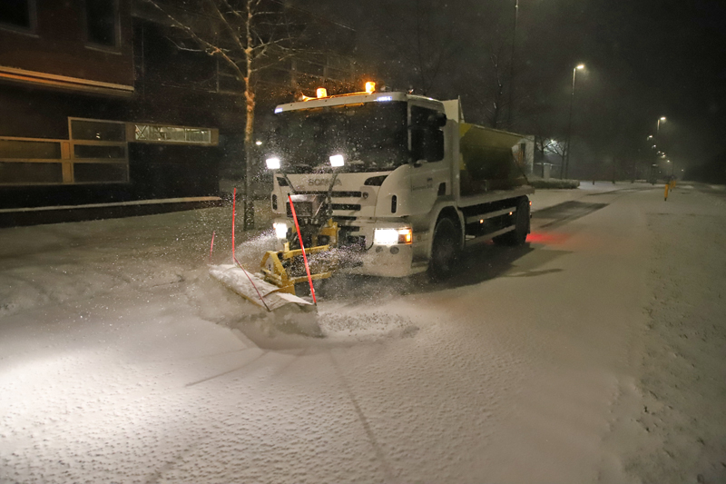 Strooiwagens rijden af- en aan om wegen begaanbaar te houden. Let goed op uw snelheid mocht u de weg op gaan.