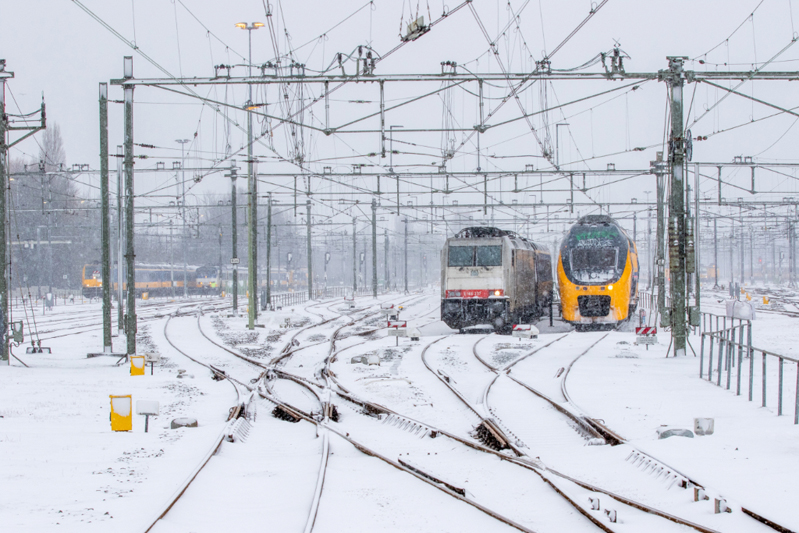 Door heel Nederland rijden geen treinen door de hevige sneeuwval. Spoorwegbeheerder Prorail is samen met partners bezig om de sporen weer begaanbaar te maken.