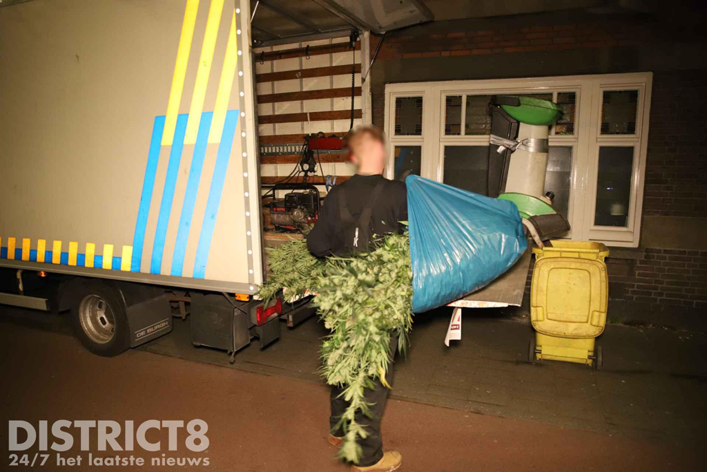 Nadat de stroom van de woning was uitgeschakeld kon het ontruimen beginnen. De planten en de materialen zijn door een gespecialiseerd bedrijf vernietigd en afgevoerd.