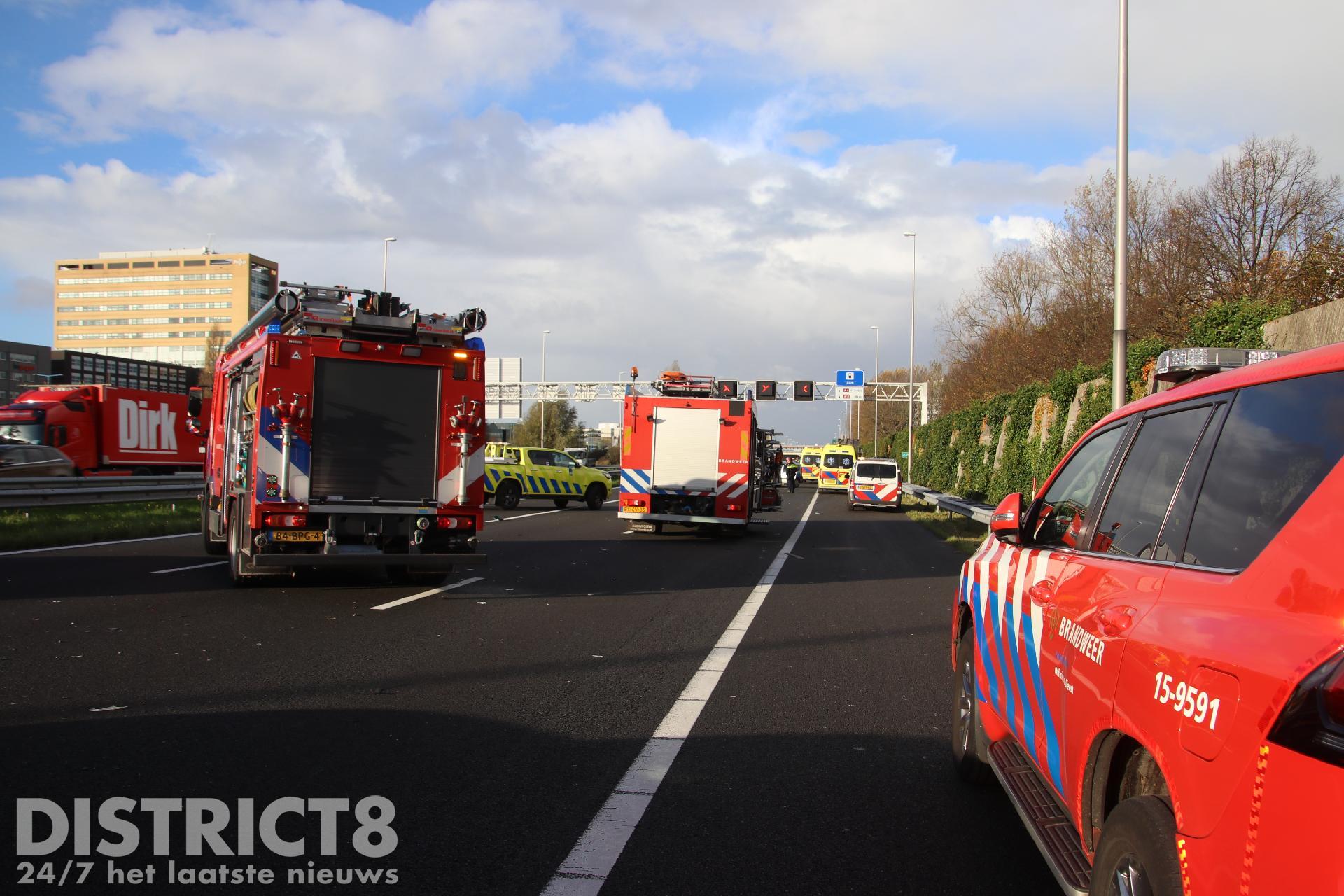 Na een aanrijding tussen een vrachtwagen en twee personenauto’s op de A12 van Zoetermeer naar Den Haag is de snelweg tijdelijk afgesloten geweest. Het incident vond plaats enkele uren geleden en leidde tot de tijdelijke ontwrichting van het verkeer op de snelweg.